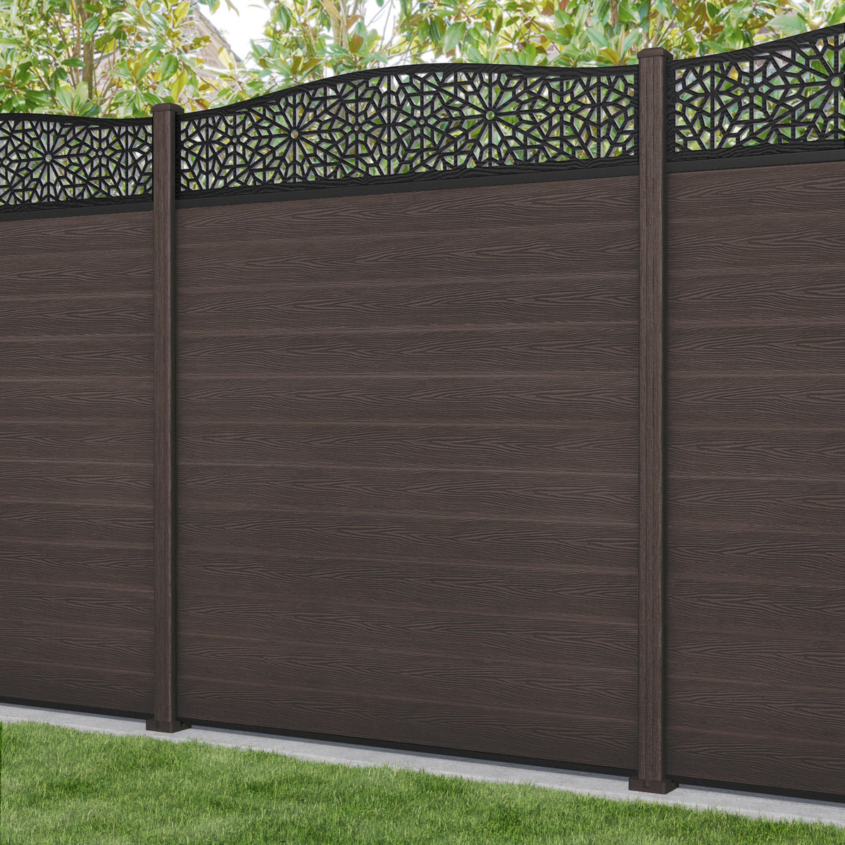 Classic Alnara Curved Top Fence Panel Mid Brown - with our composite posts