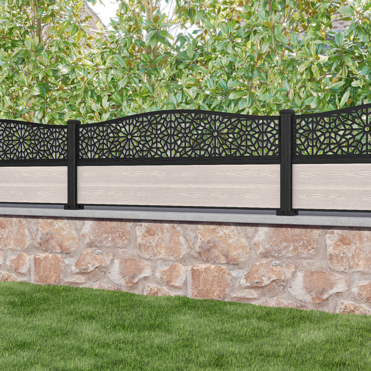Classic Alnara Curved Top Fence Panel Mid Stone - with our composite posts