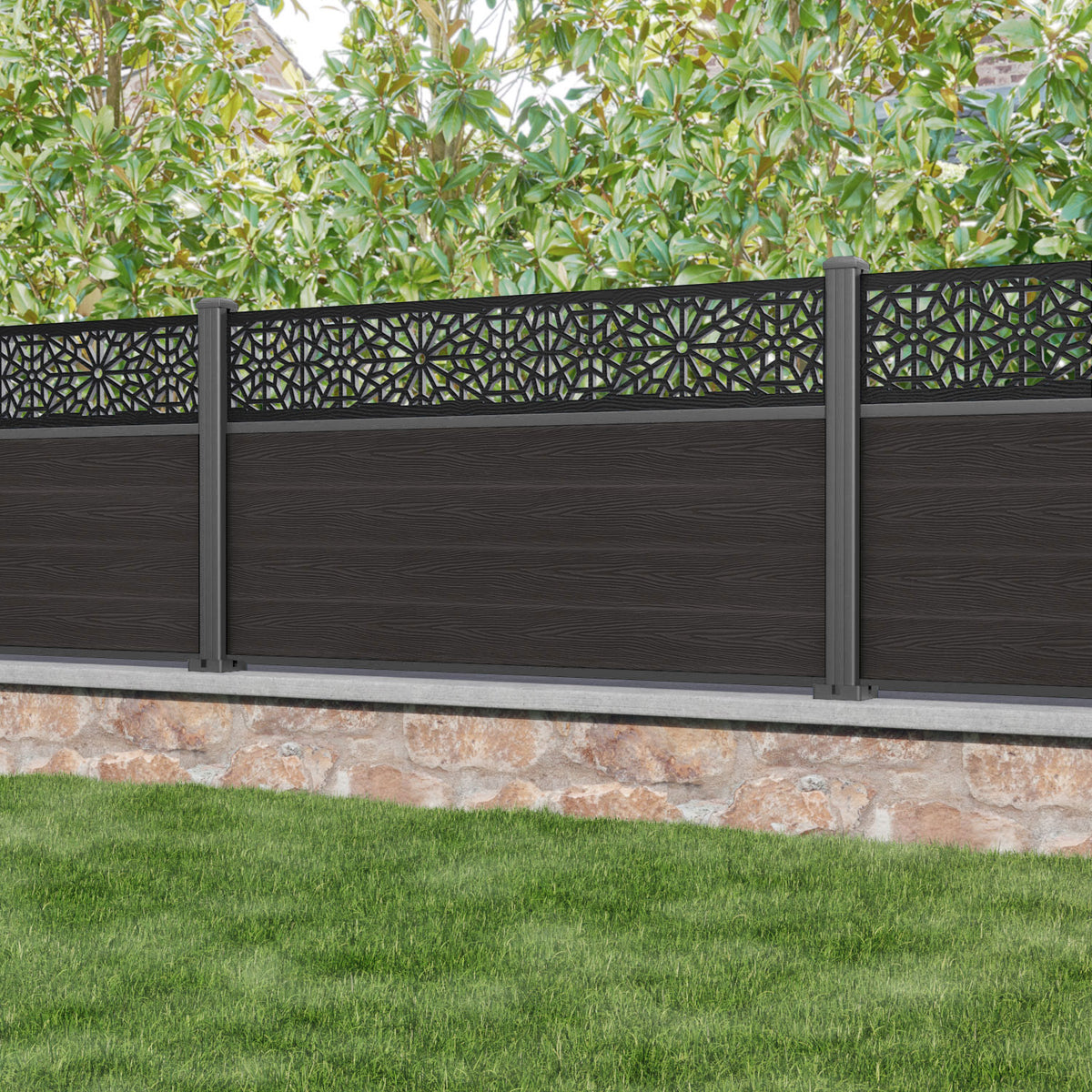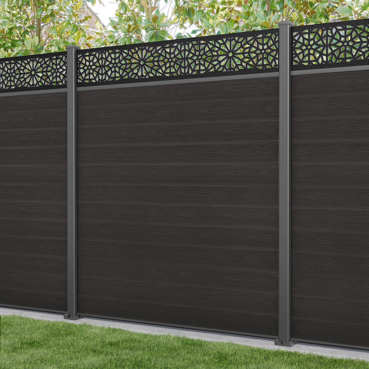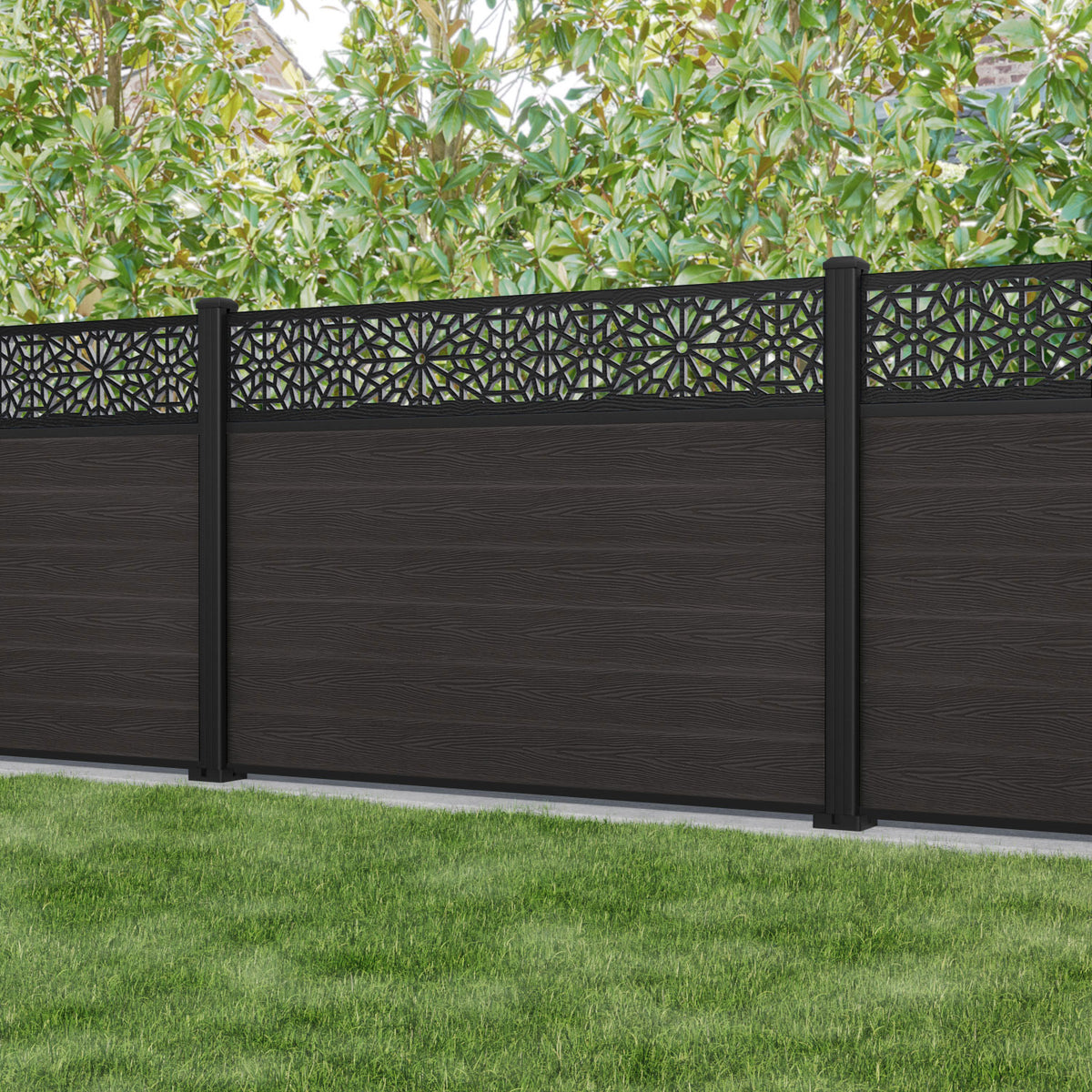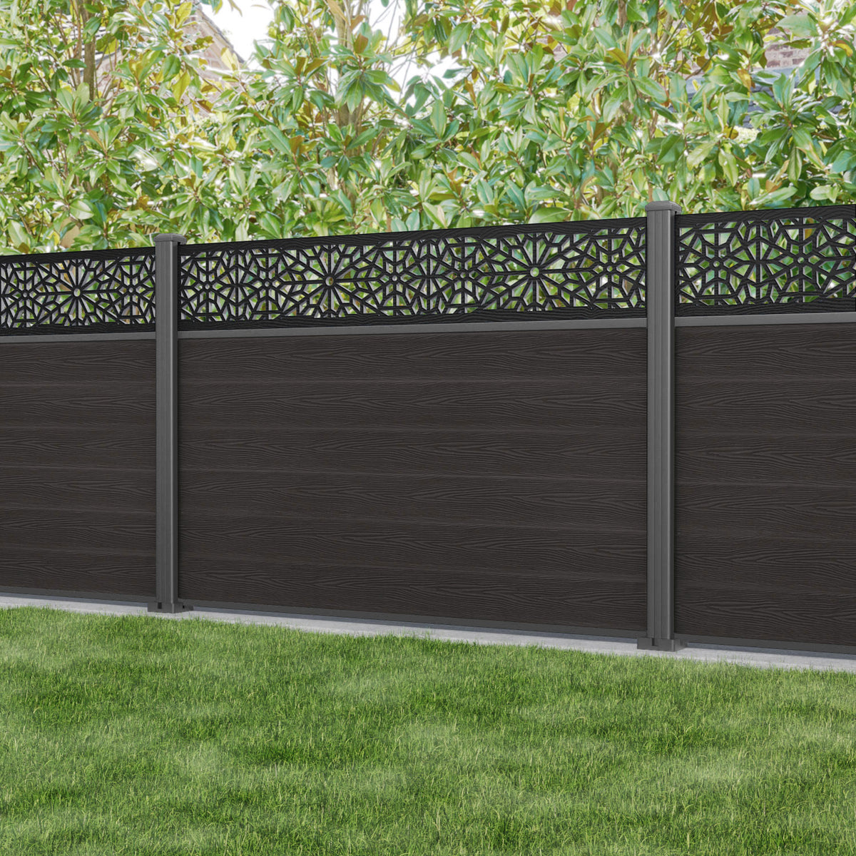 Classic Alnara Fence Panel Dark Oak - with our aluminium posts