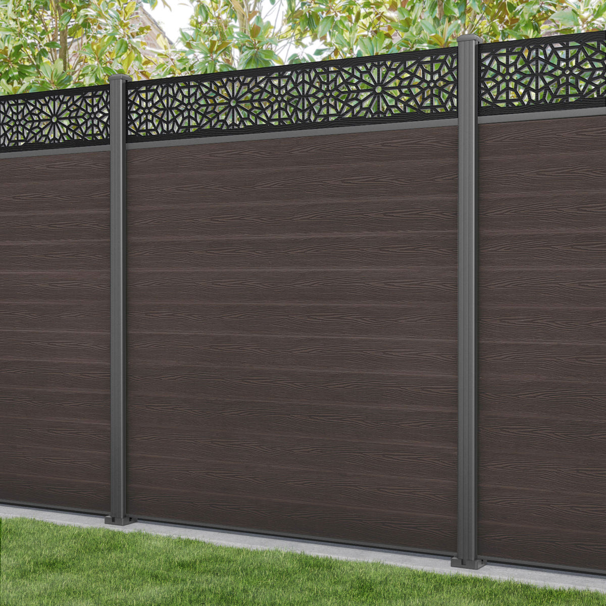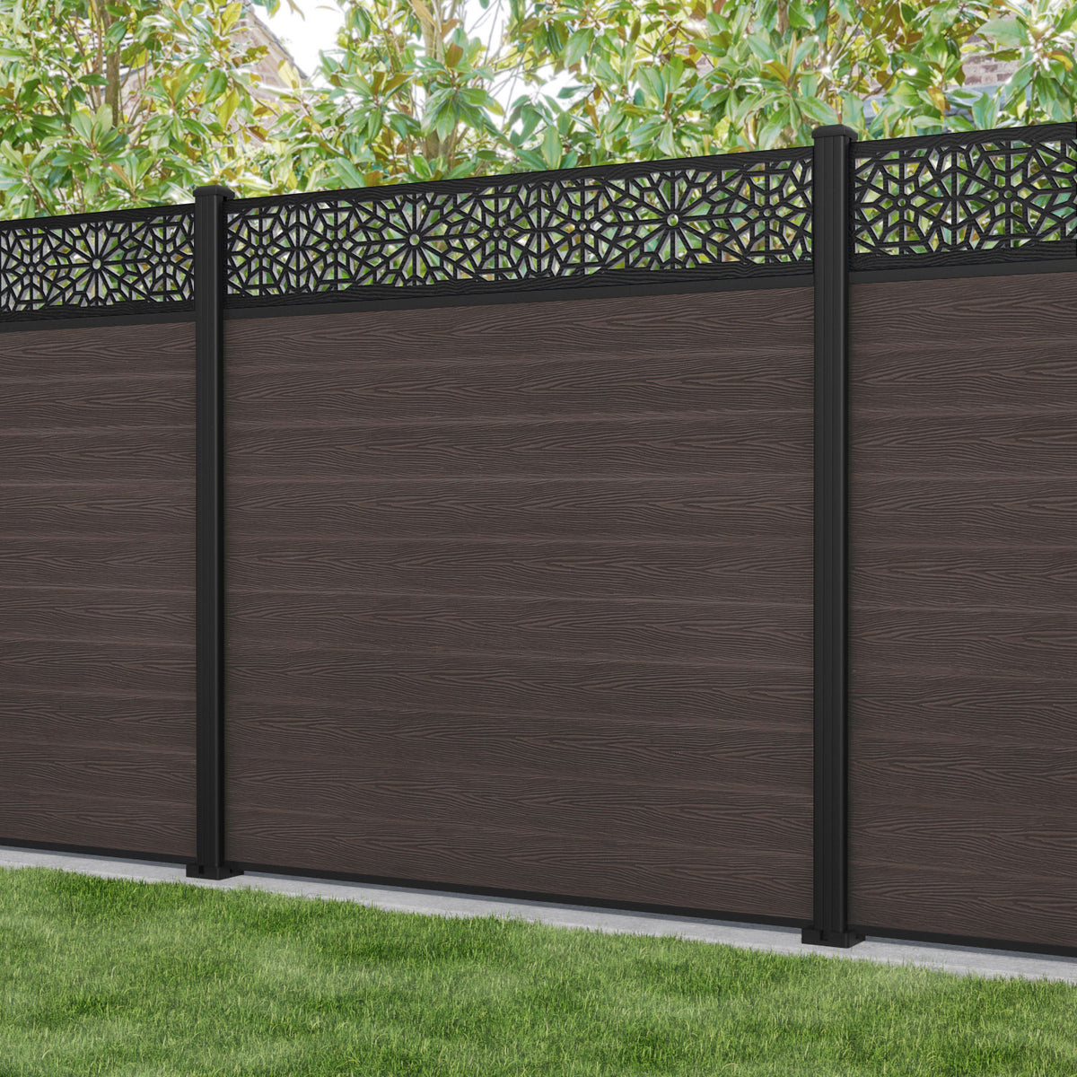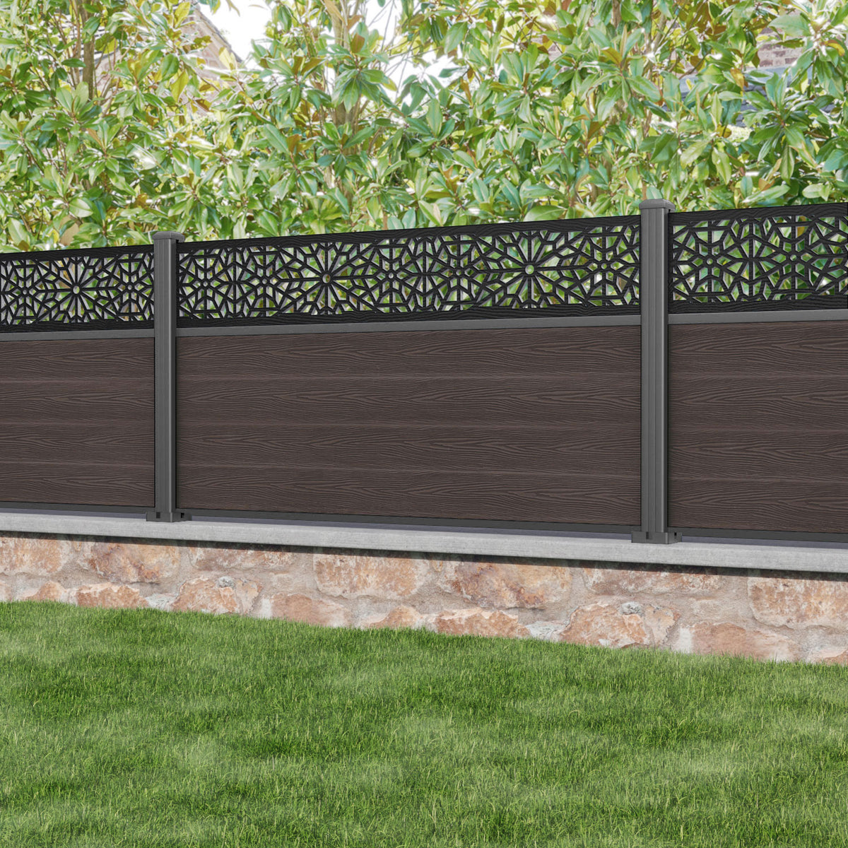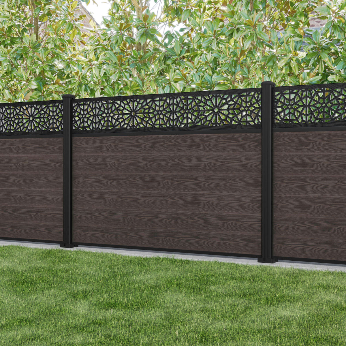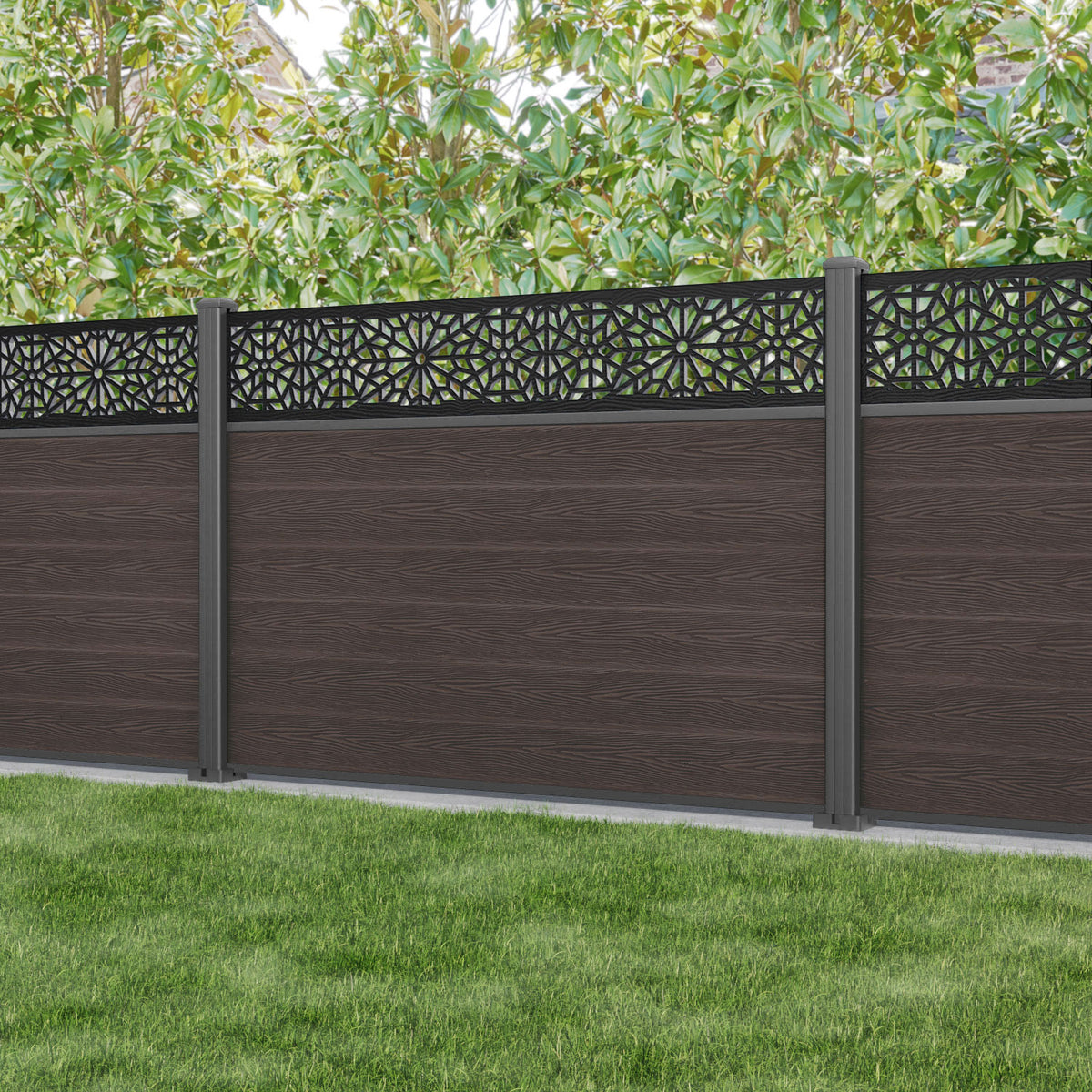 Classic Alnara Fence Panel Mid Brown - with our aluminium posts