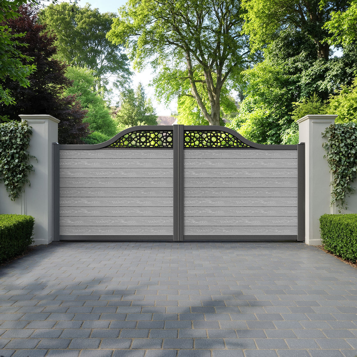 Classic Ambar Curved Top Driveway Gate Light Grey - Top Screen