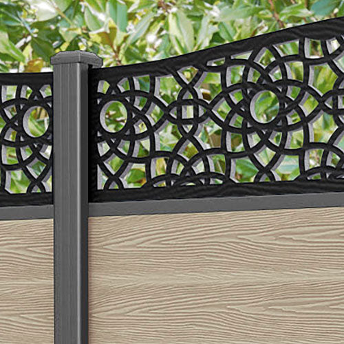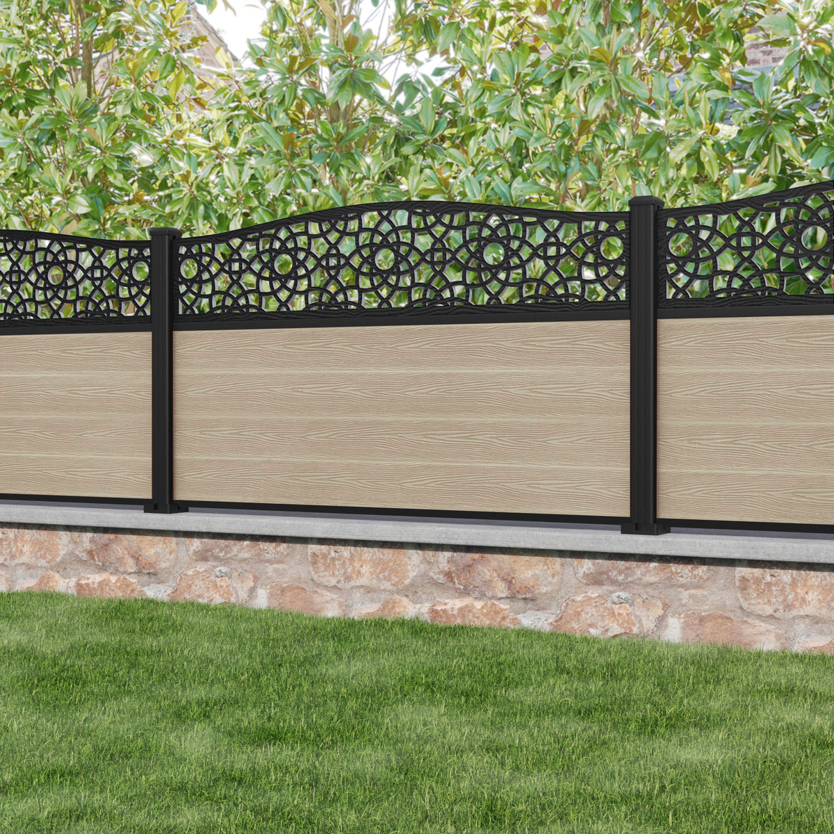 Classic Ambar Curved Top Fence Panel Light Oak - with our aluminium posts
