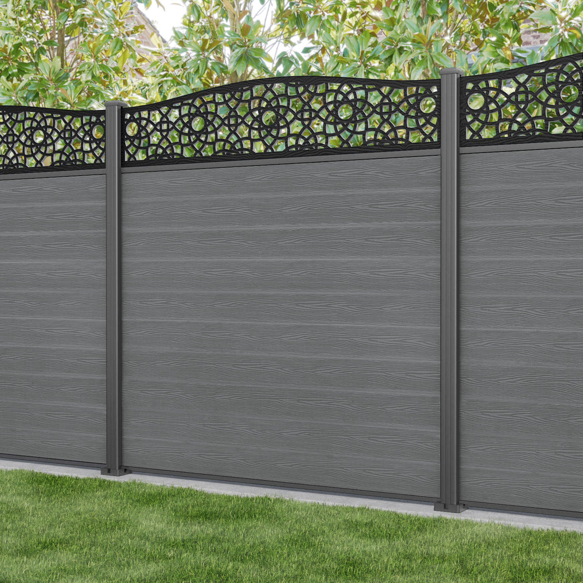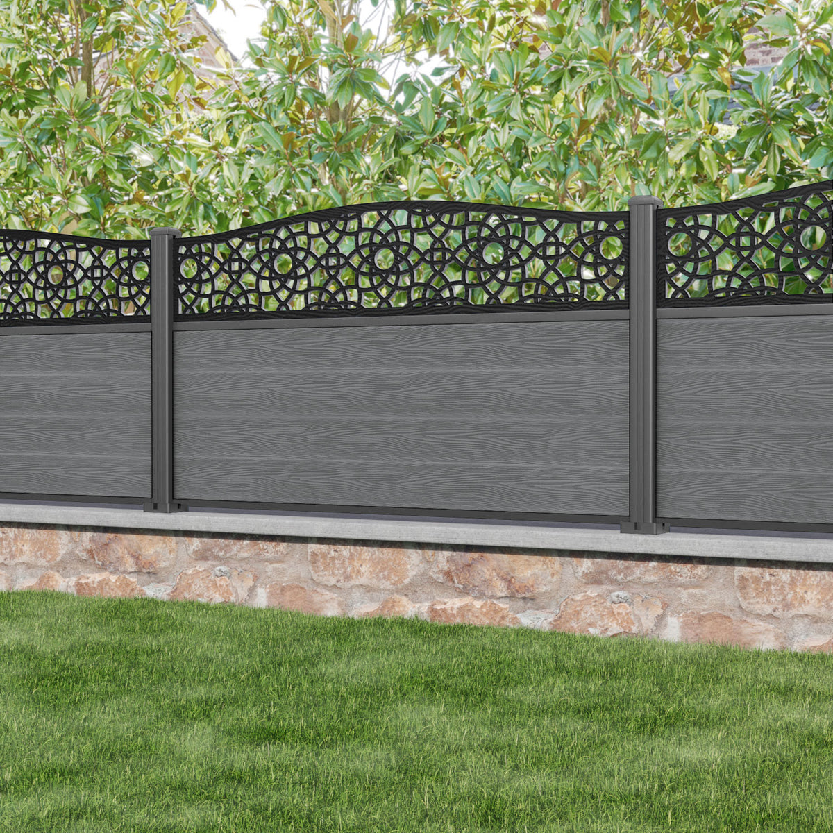 Classic Ambar Curved Top Fence Panel Mid Grey - with our aluminium posts