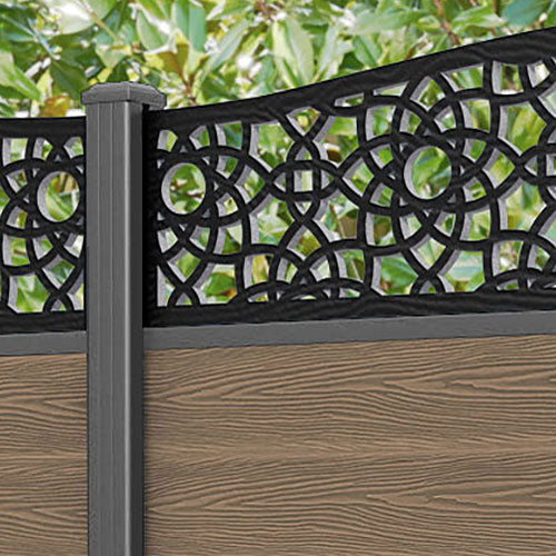 Classic Ambar Curved Top Fence Panel Teak - with our aluminium posts
