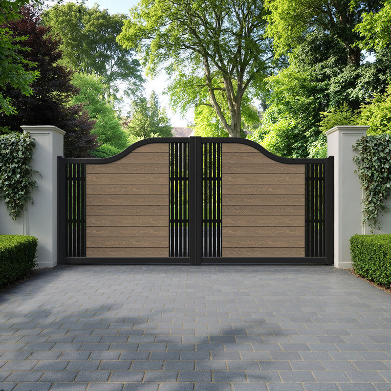 Classic Aspen Curved Top Driveway Gate Teak - Middle & End Screen