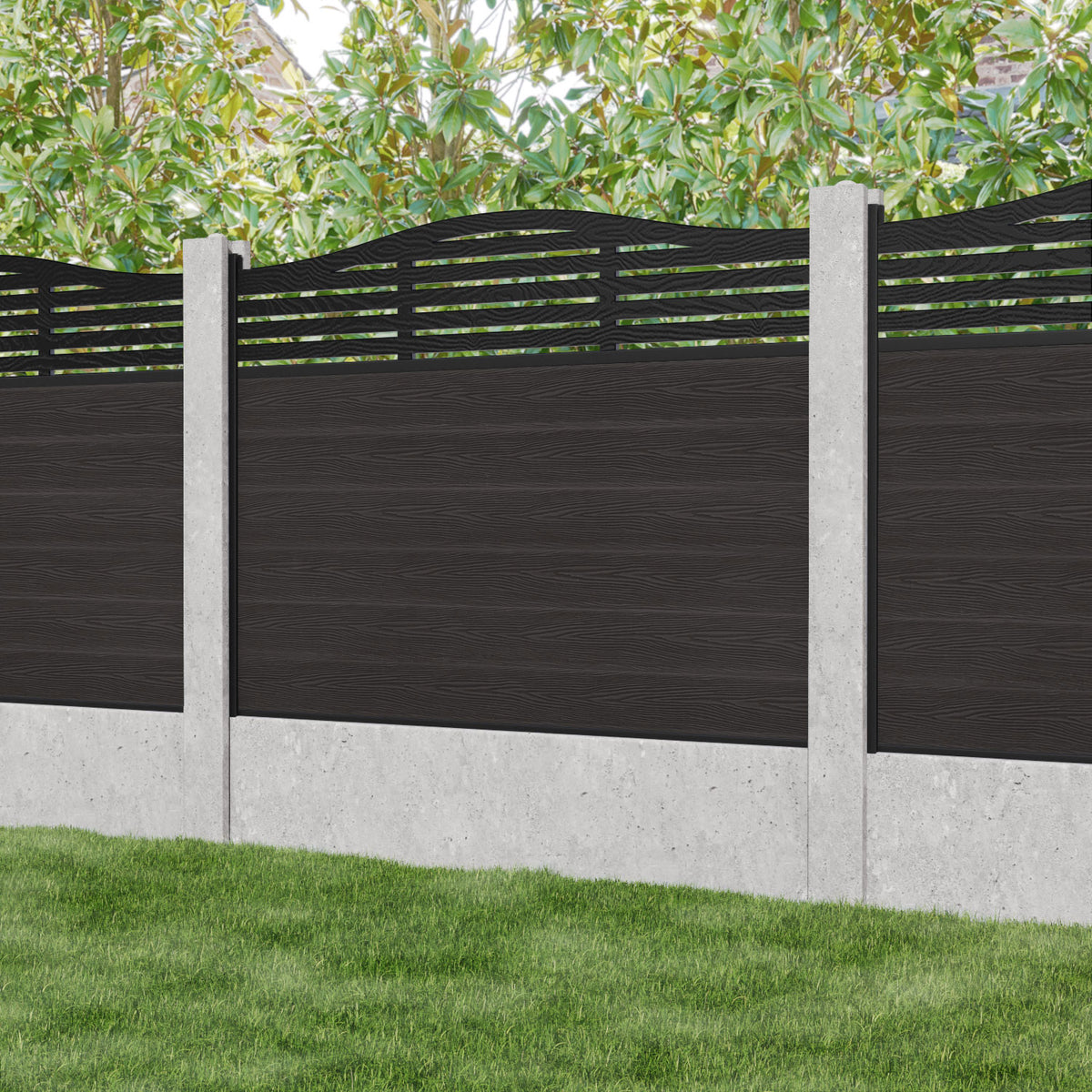 Classic Aspen Curved Top Fence Panel Dark Oak - for existing concrete posts