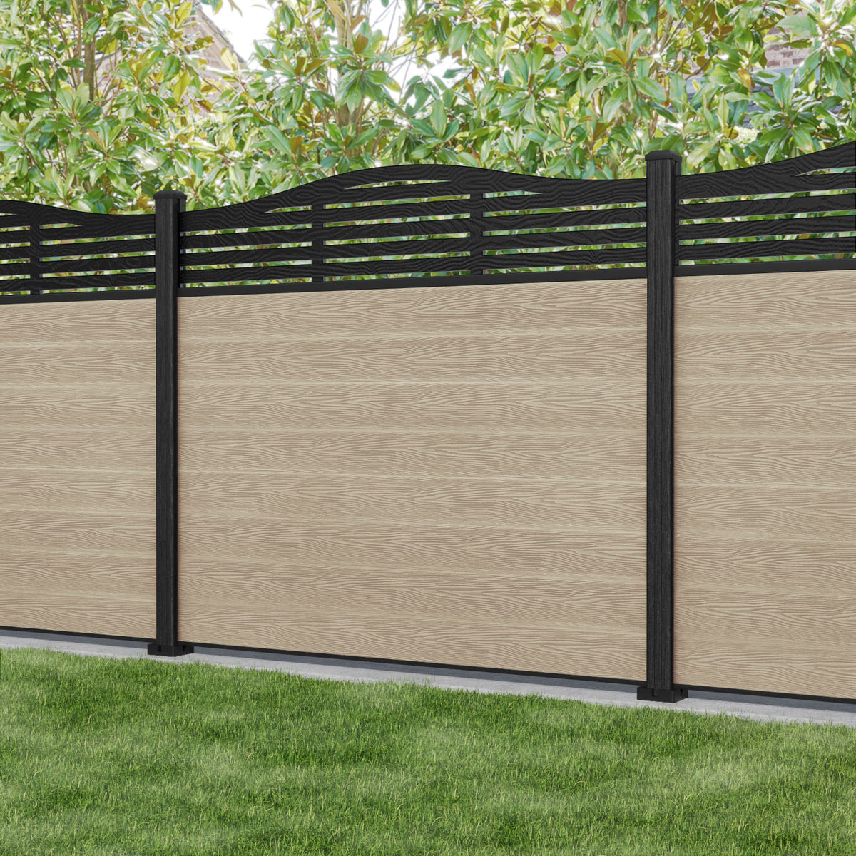 Classic Aspen Curved Top Fence Panel Light Oak - with our composite posts