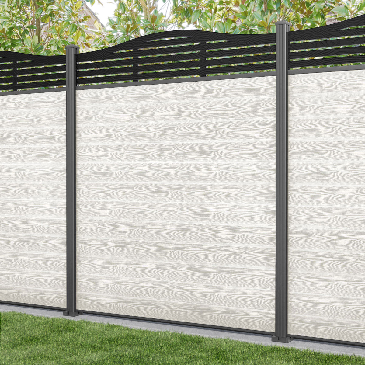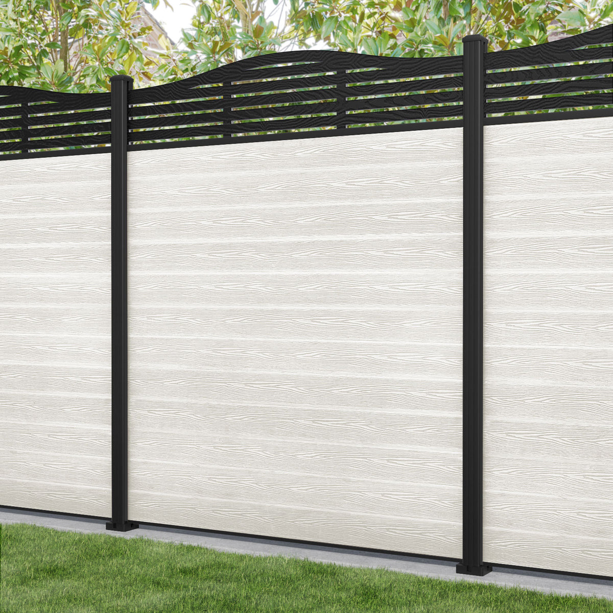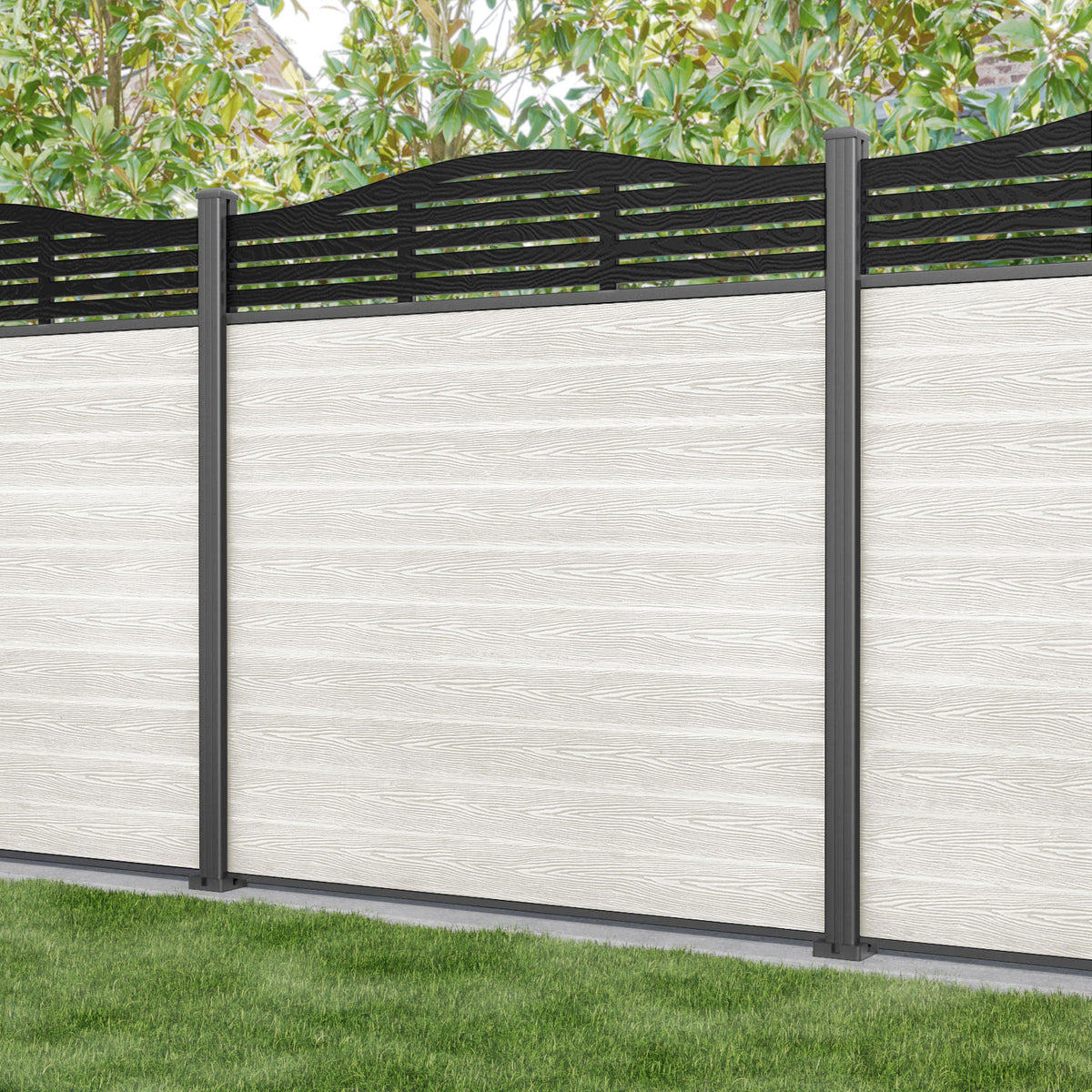 Classic Aspen Curved Top Fence Panel Light Stone - with our aluminium posts