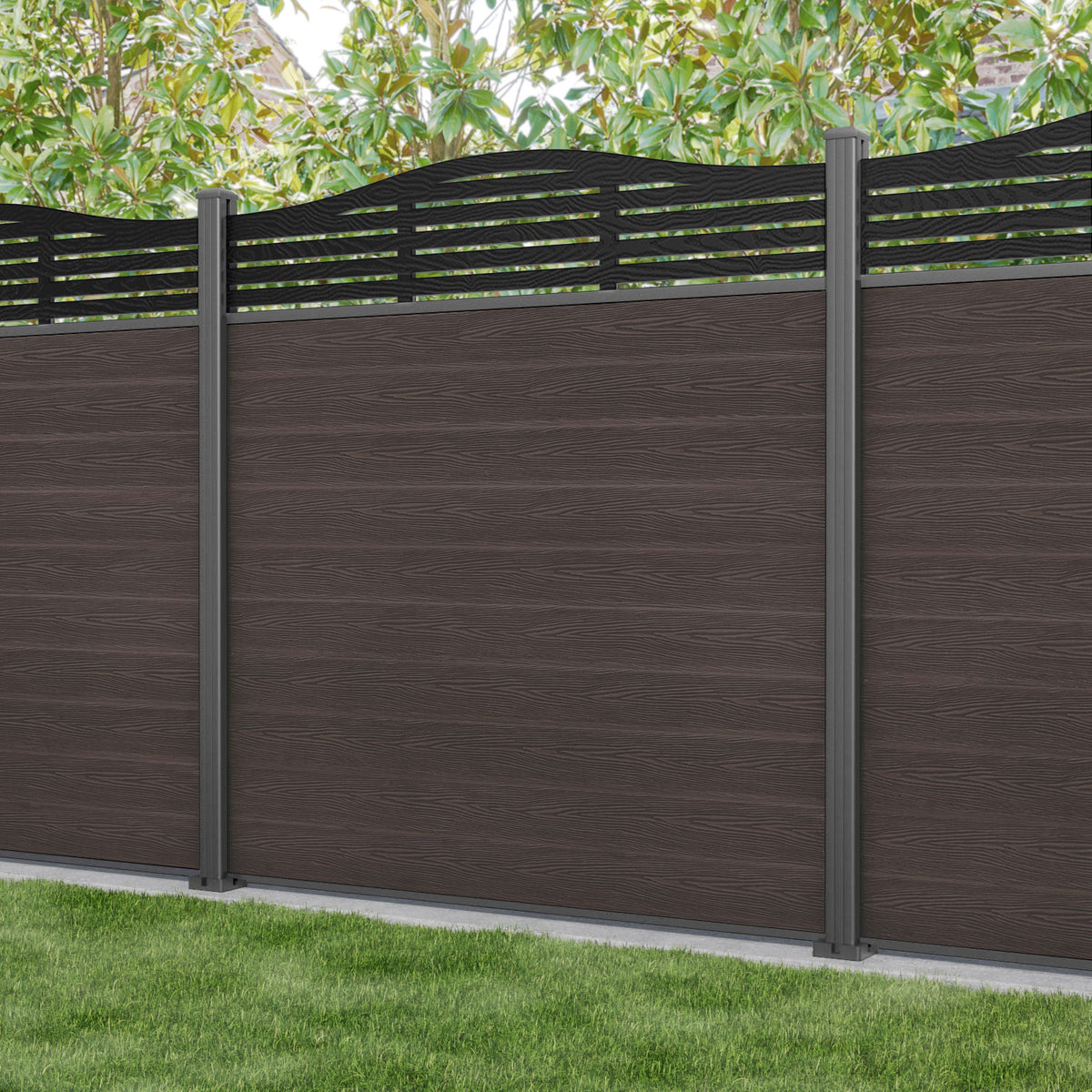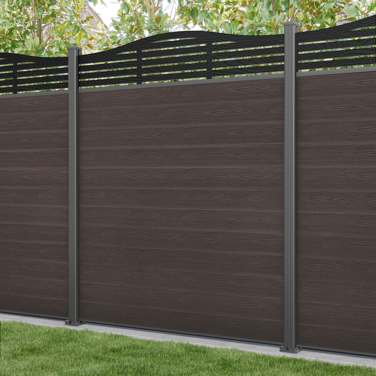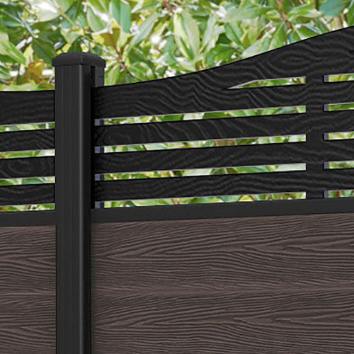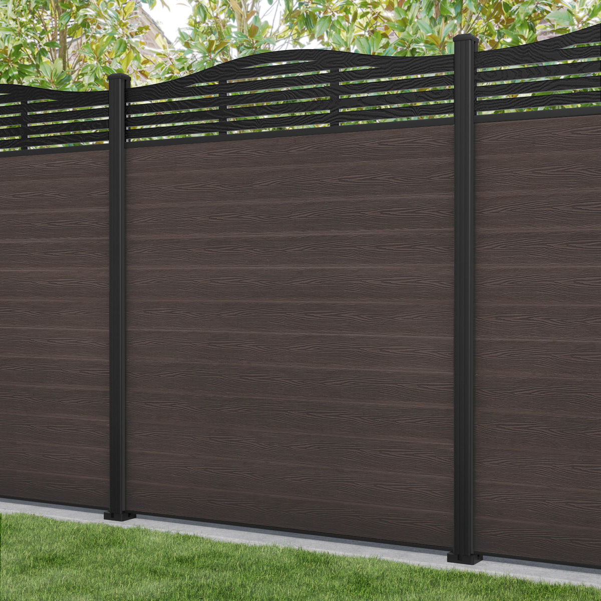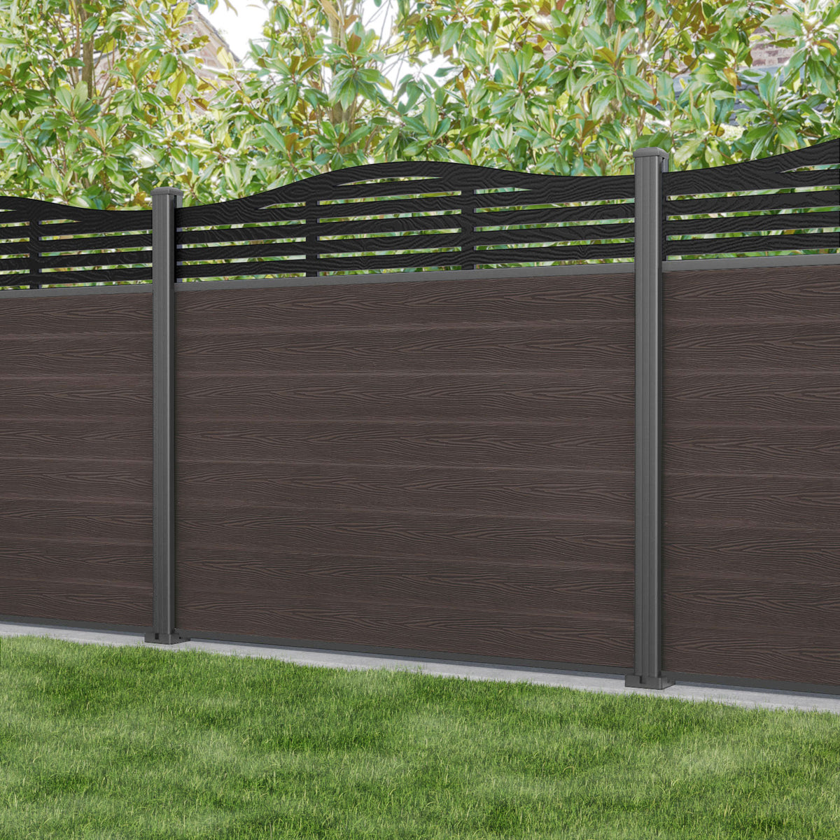 Classic Aspen Curved Top Fence Panel Mid Brown - with our aluminium posts