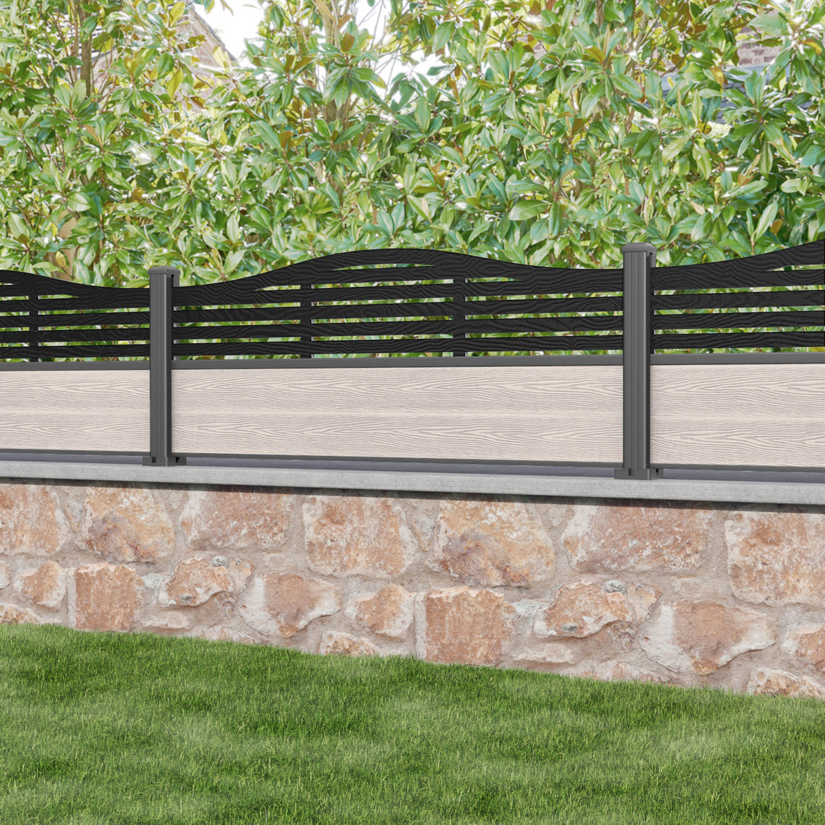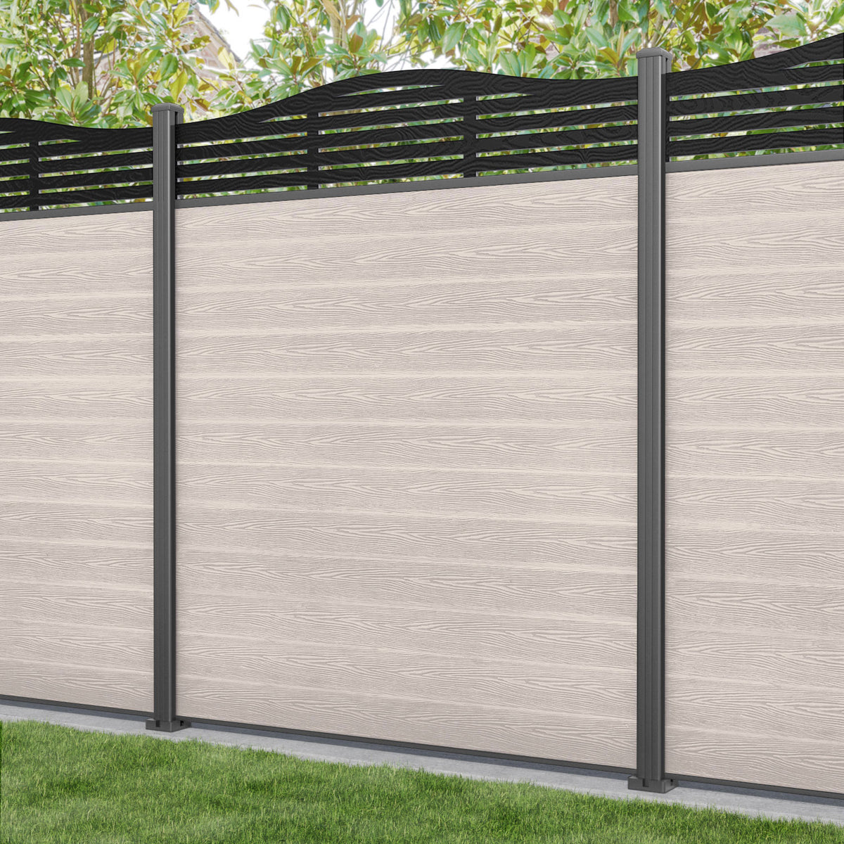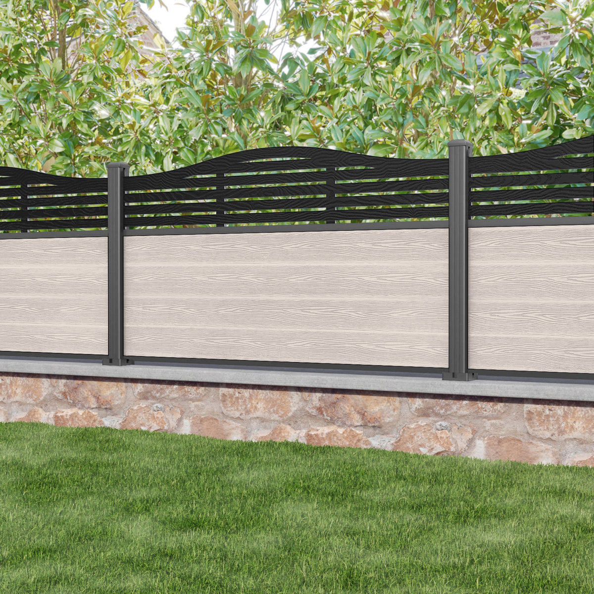Classic Aspen Curved Top Fence Panel Mid Stone - with our aluminium posts