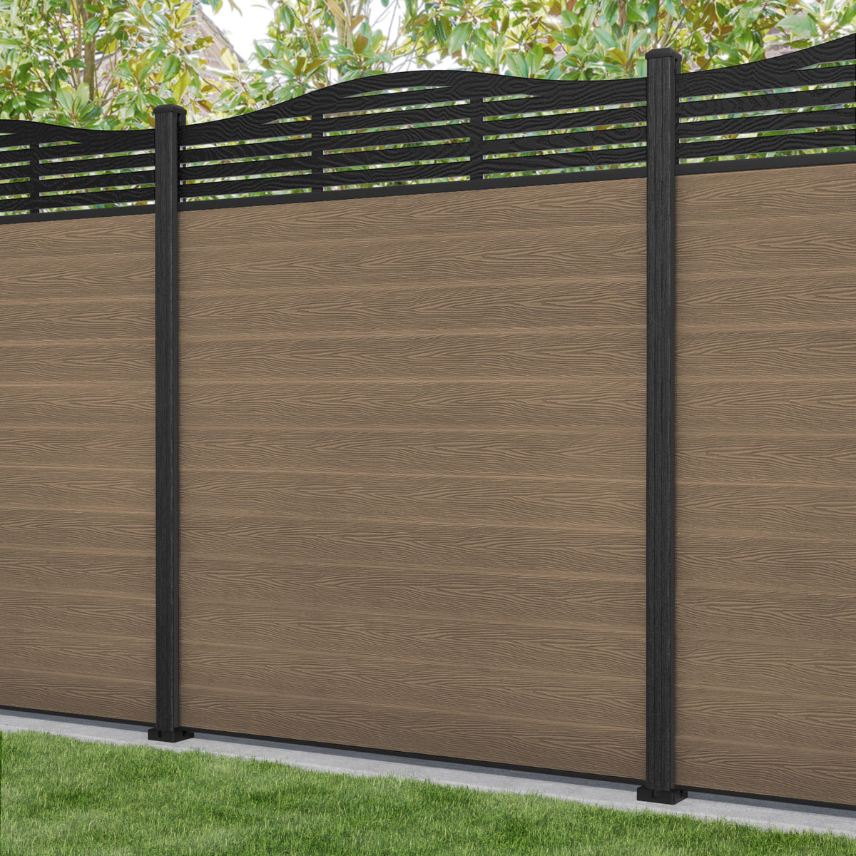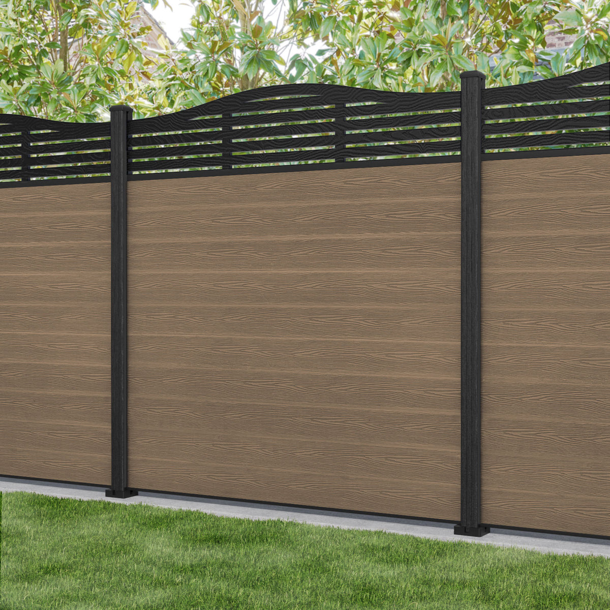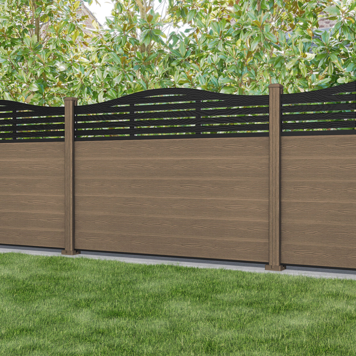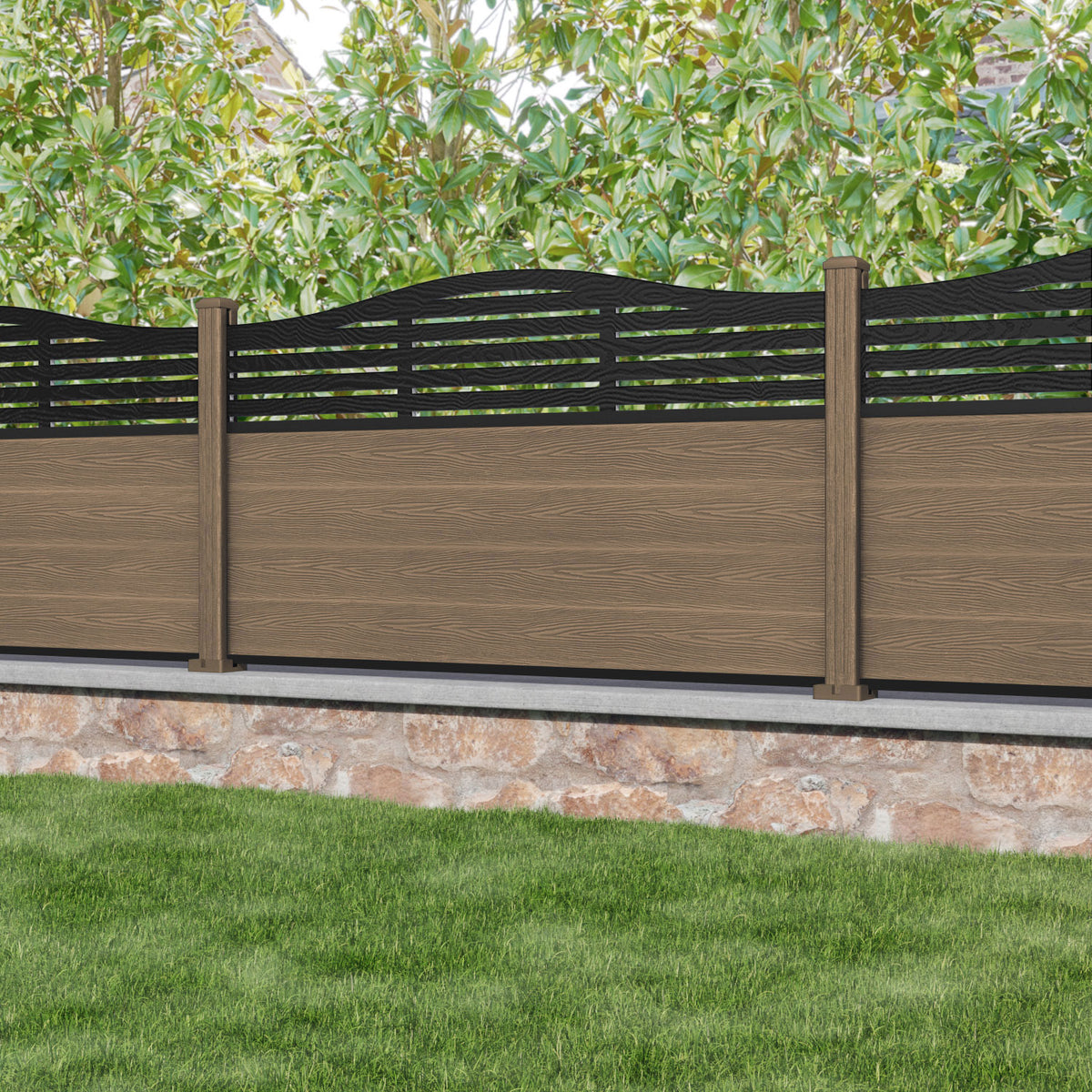 Classic Aspen Curved Top Fence Panel Teak - with our composite posts