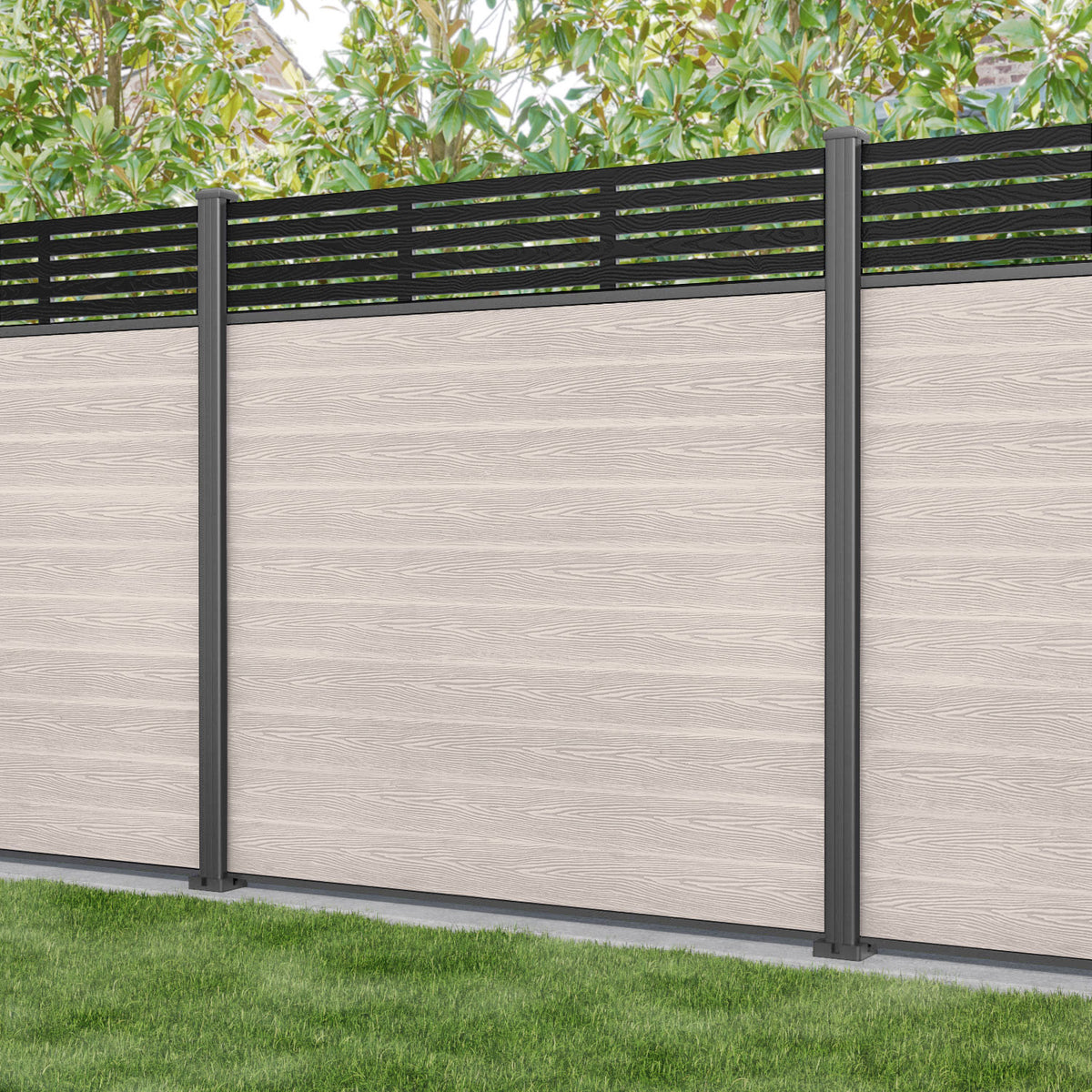 Classic Aspen Fence Panel Mid Stone - with our aluminium posts