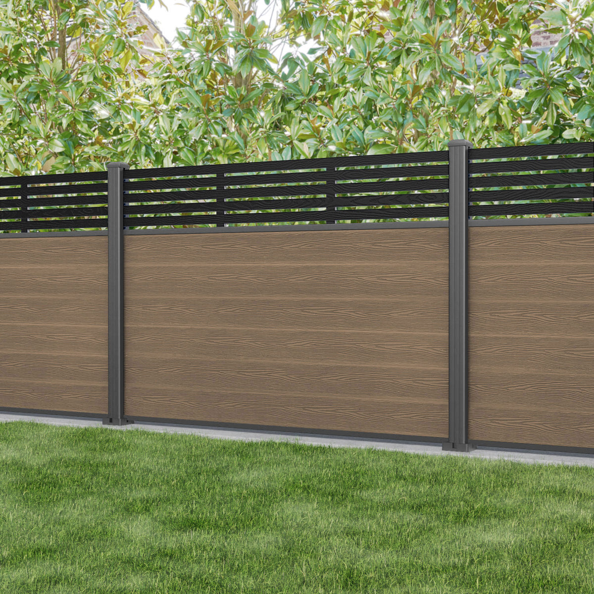 Classic Aspen Fence Panel Teak - with our aluminium posts