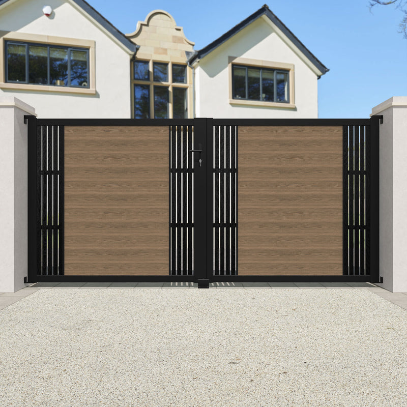 Classic Aspen Straight Top Driveway Gate Teak - Middle & End Screen