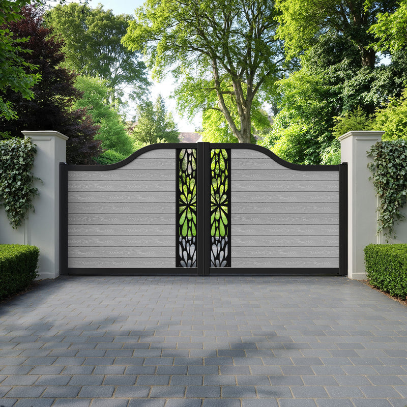 Classic Blossom Curved Top Driveway Gate Light Grey - Middle Screen