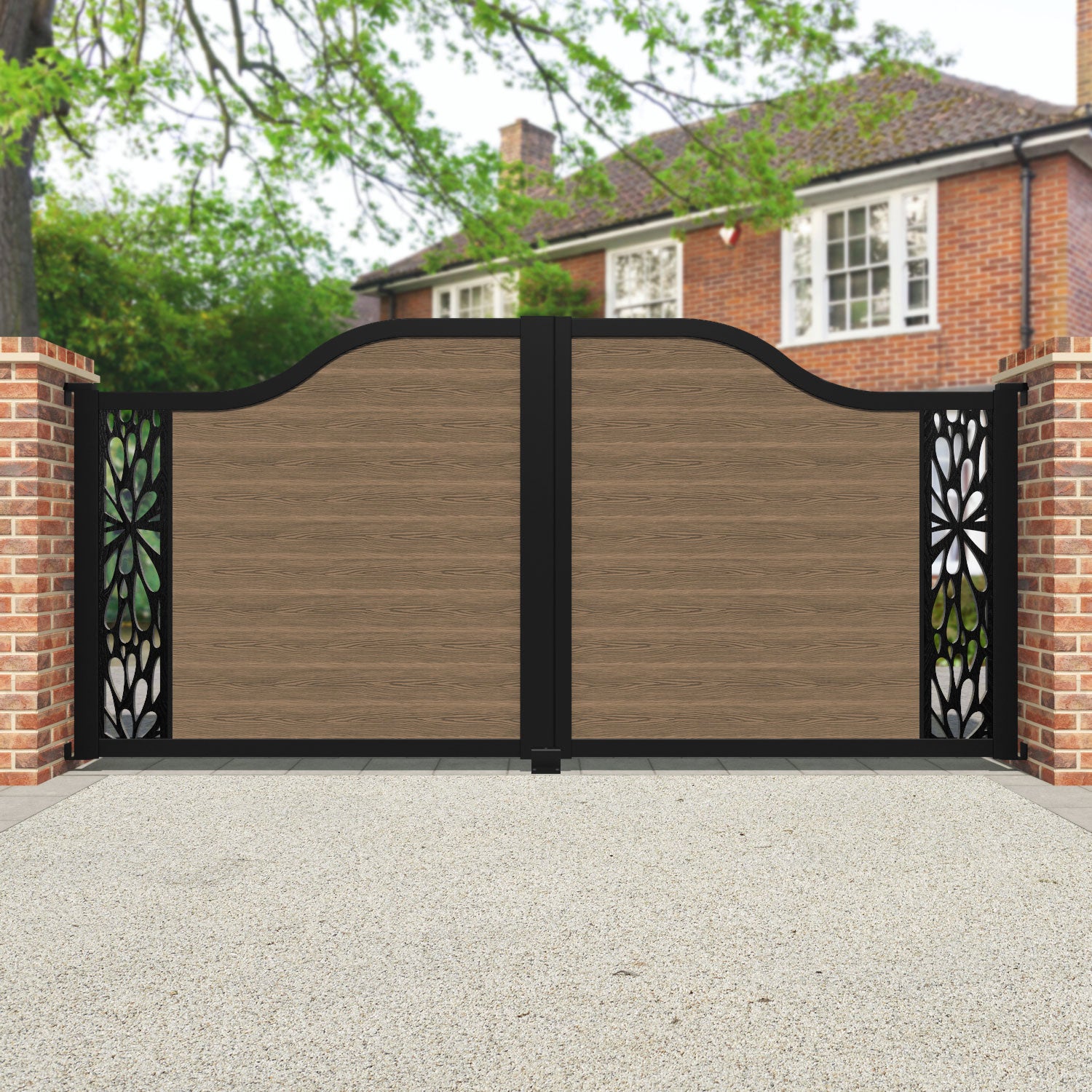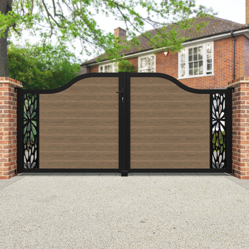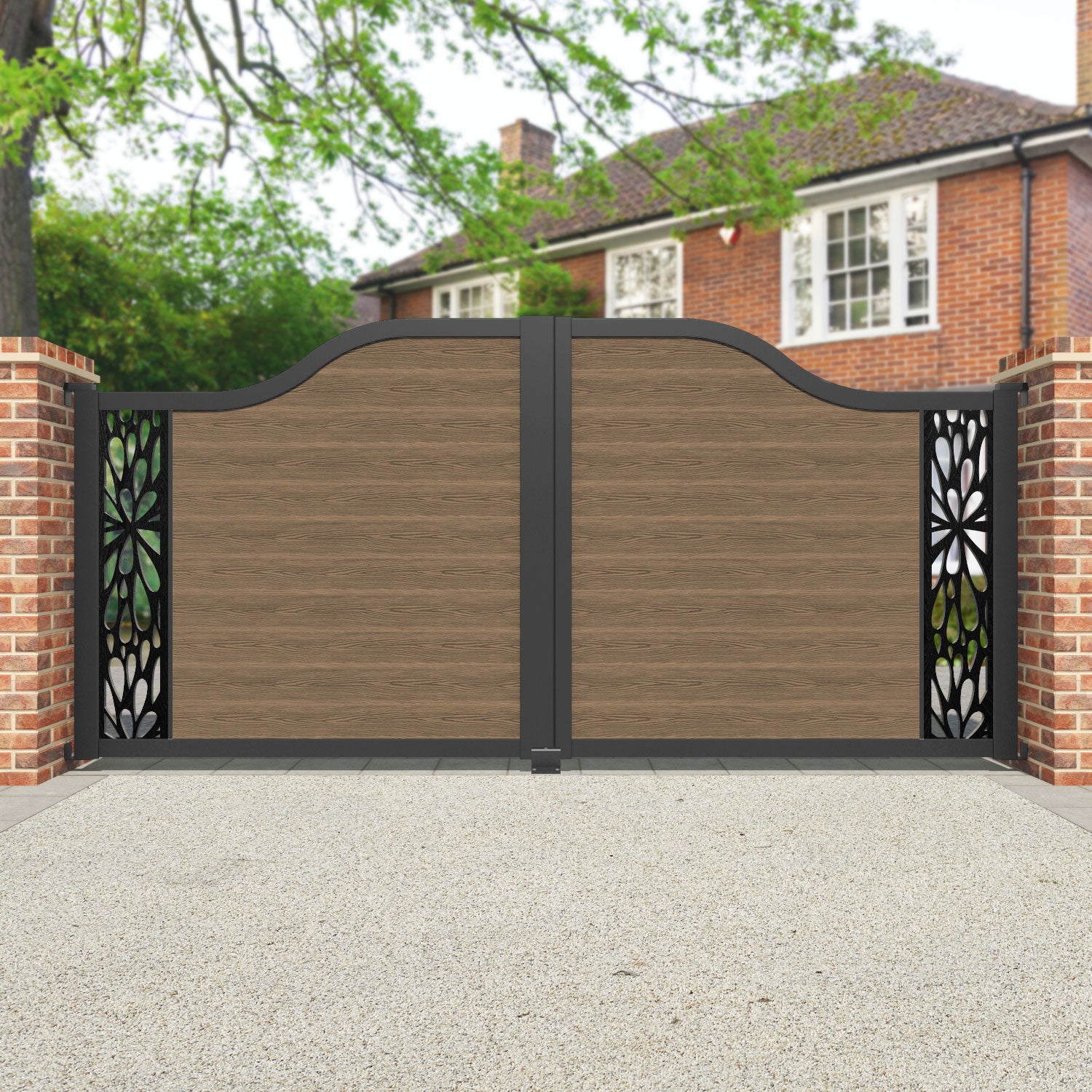 Classic Blossom Curved Top Driveway Gate Teak - End Screen