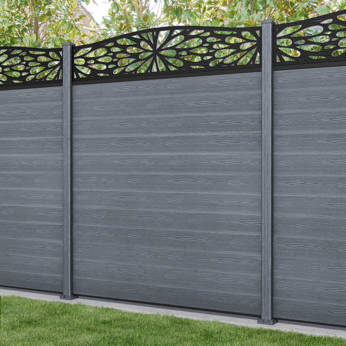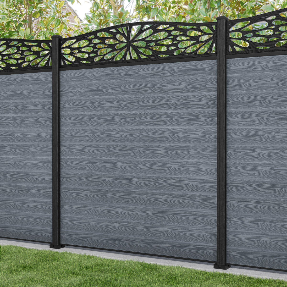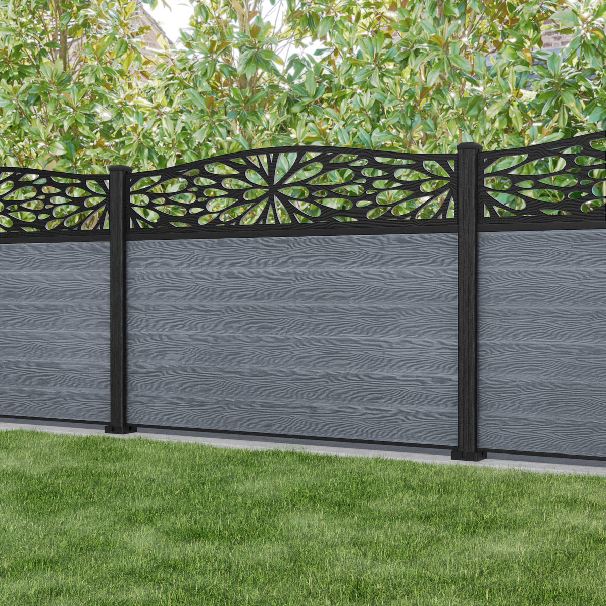 Classic Blossom Curved Top Fence Panel Anthracite - with our composite posts