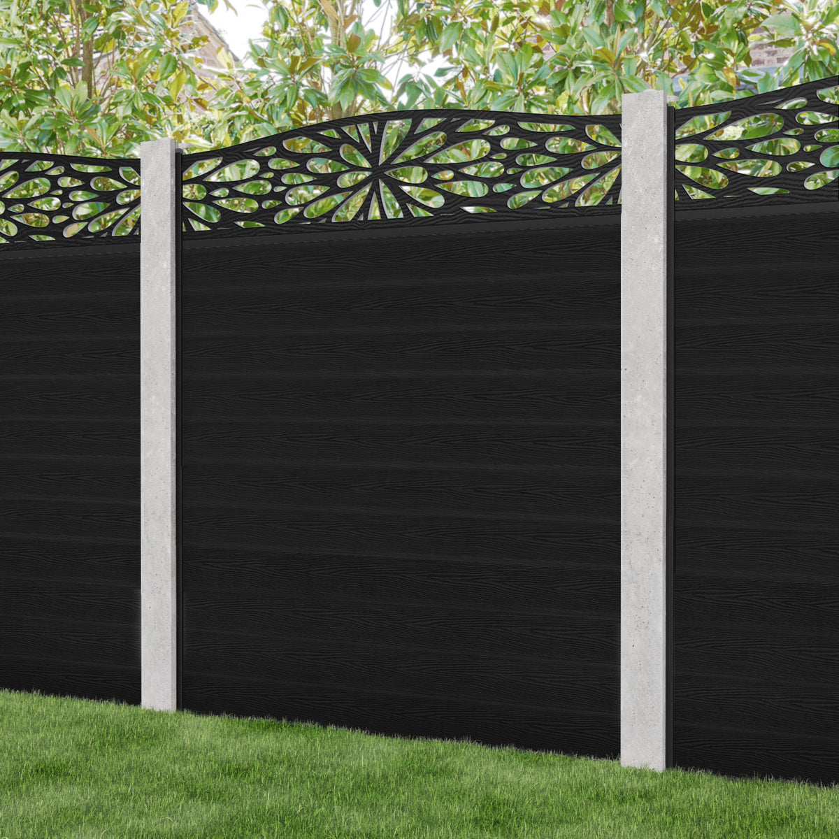 Classic Blossom Curved Top Fence Panel Black - for existing concrete posts