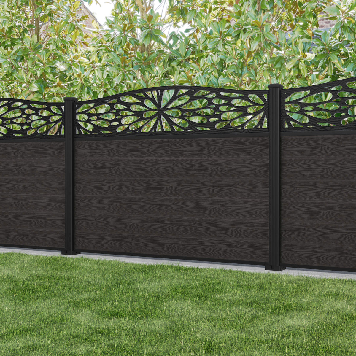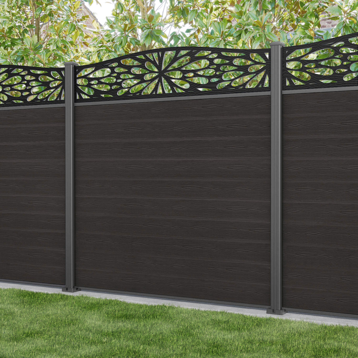 Classic Blossom Curved Top Fence Panel Dark Oak - with our aluminium posts