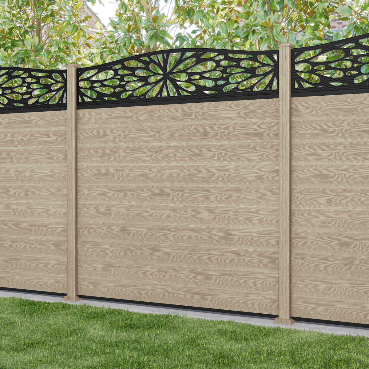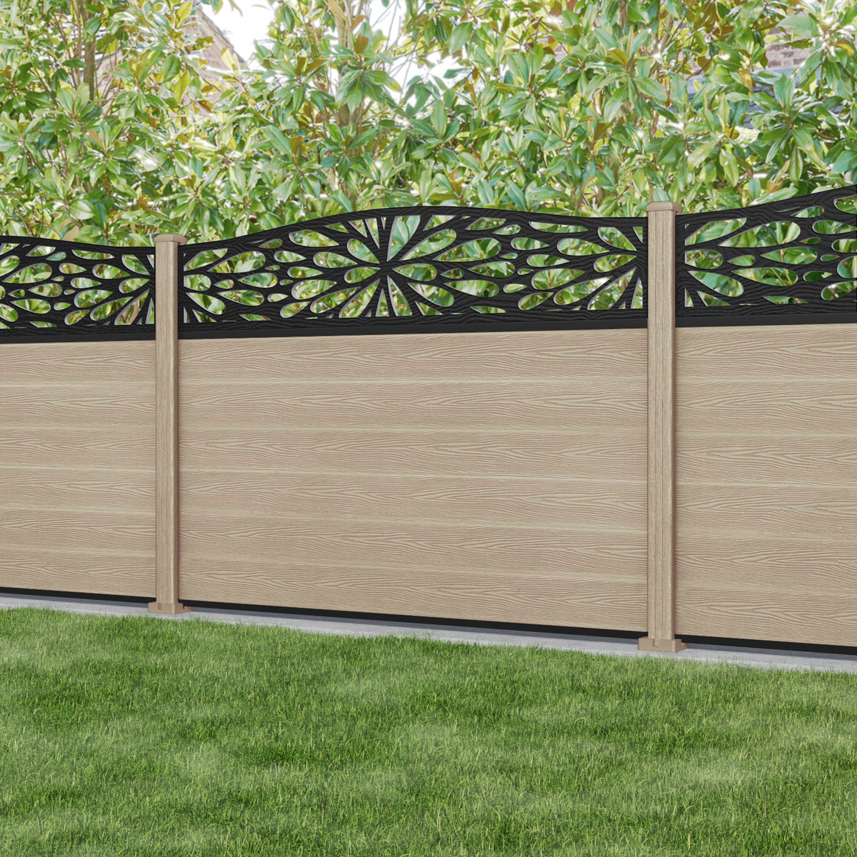 Classic Blossom Curved Top Fence Panel Light Oak - with our composite posts