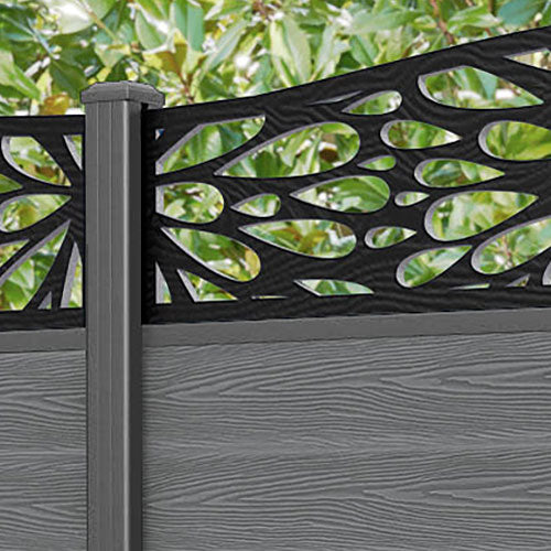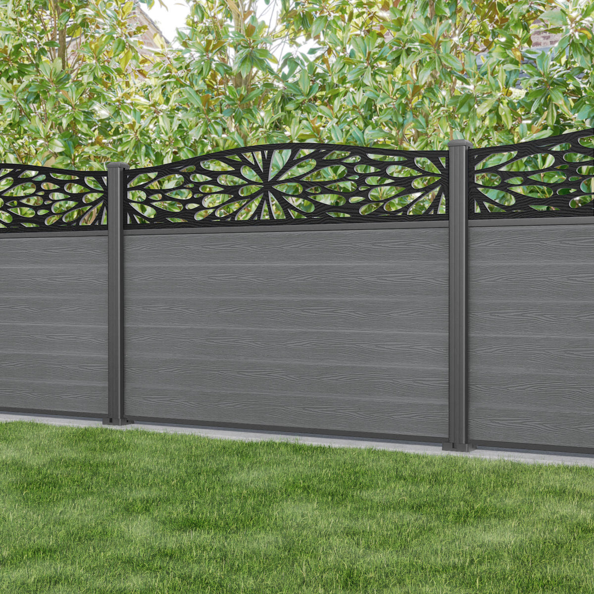 Classic Blossom Curved Top Fence Panel Mid Grey - with our aluminium posts