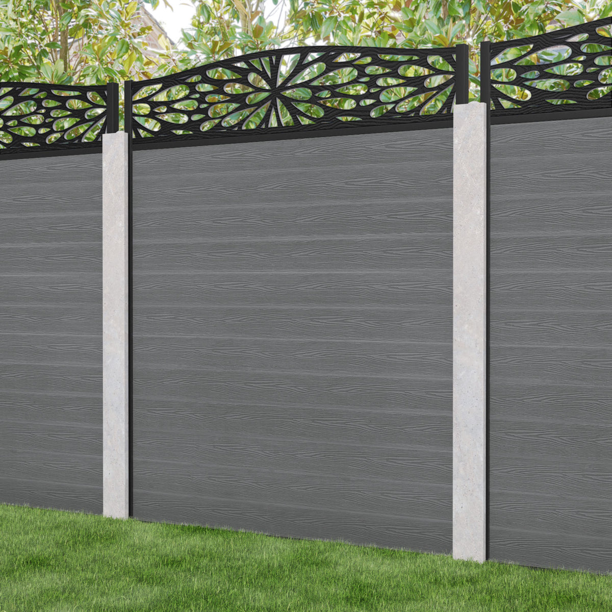 Classic Blossom Curved Top Fence Panel Mid Grey - for existing concrete posts