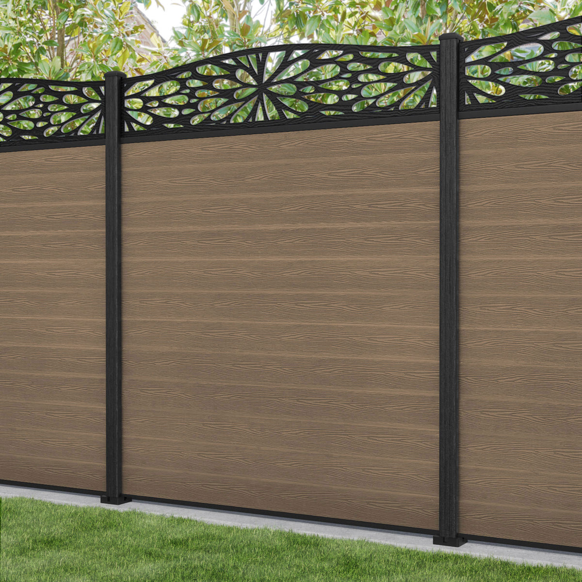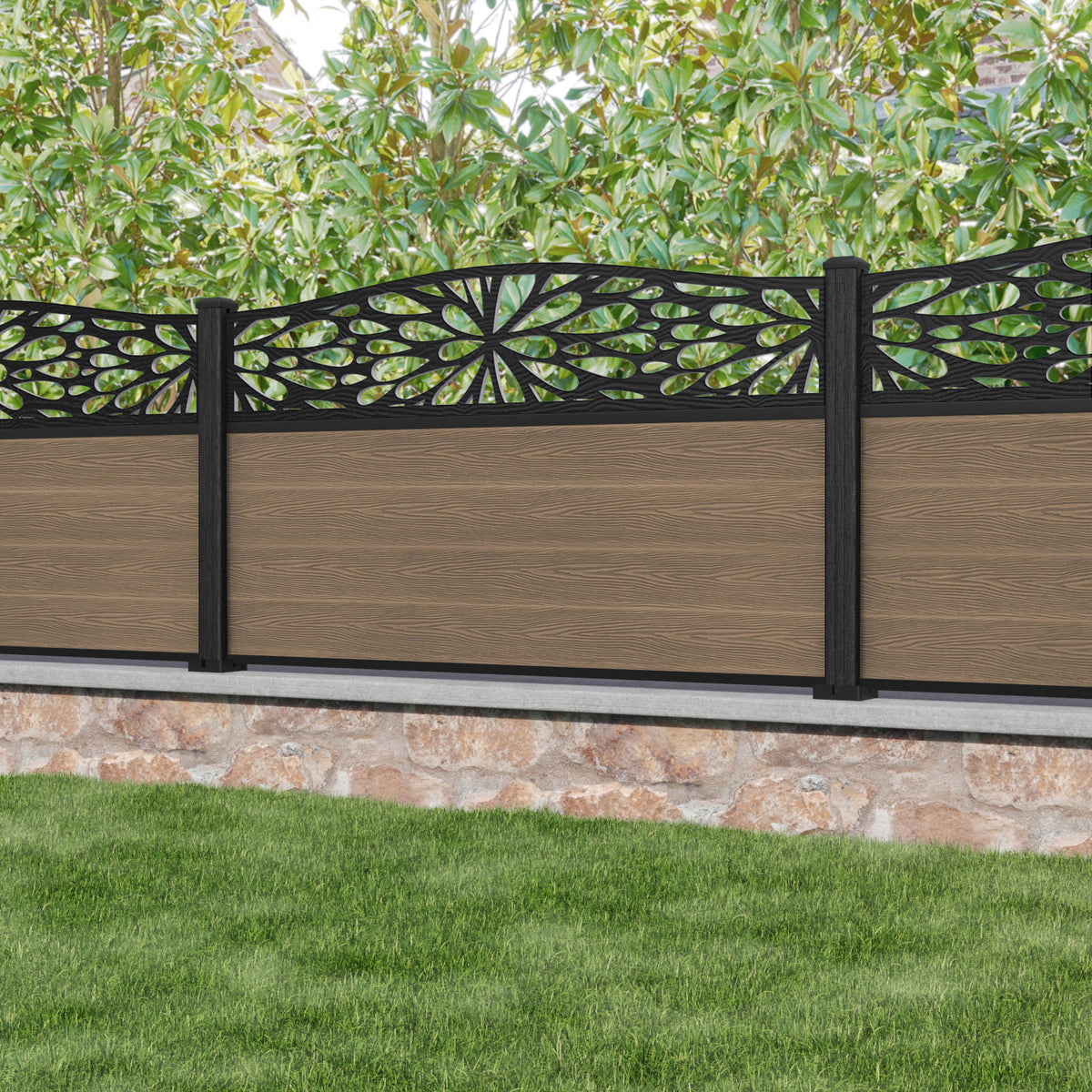 Classic Blossom Curved Top Fence Panel Teak - with our composite posts