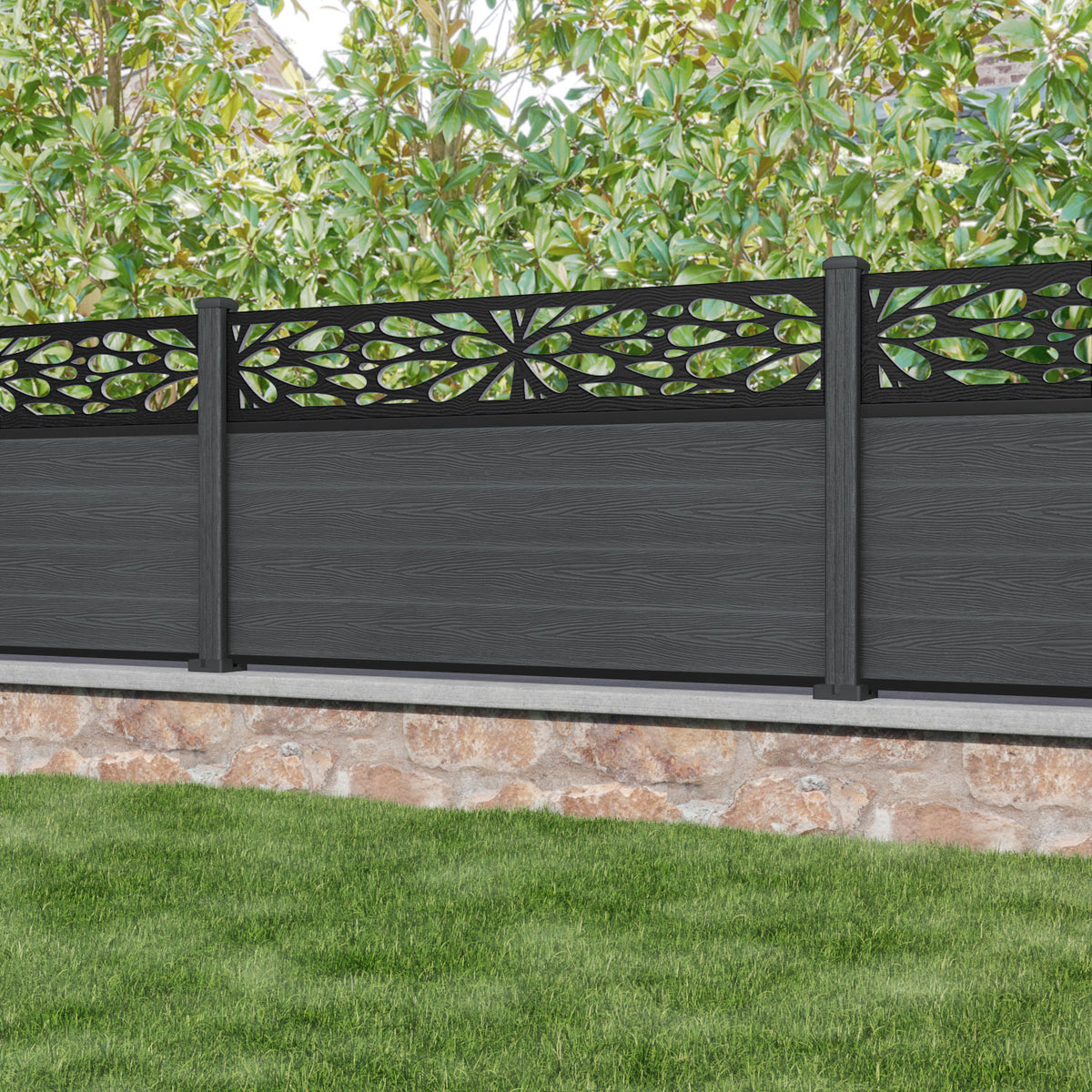 Classic Blossom Fence Panel Dark Grey - with our composite posts