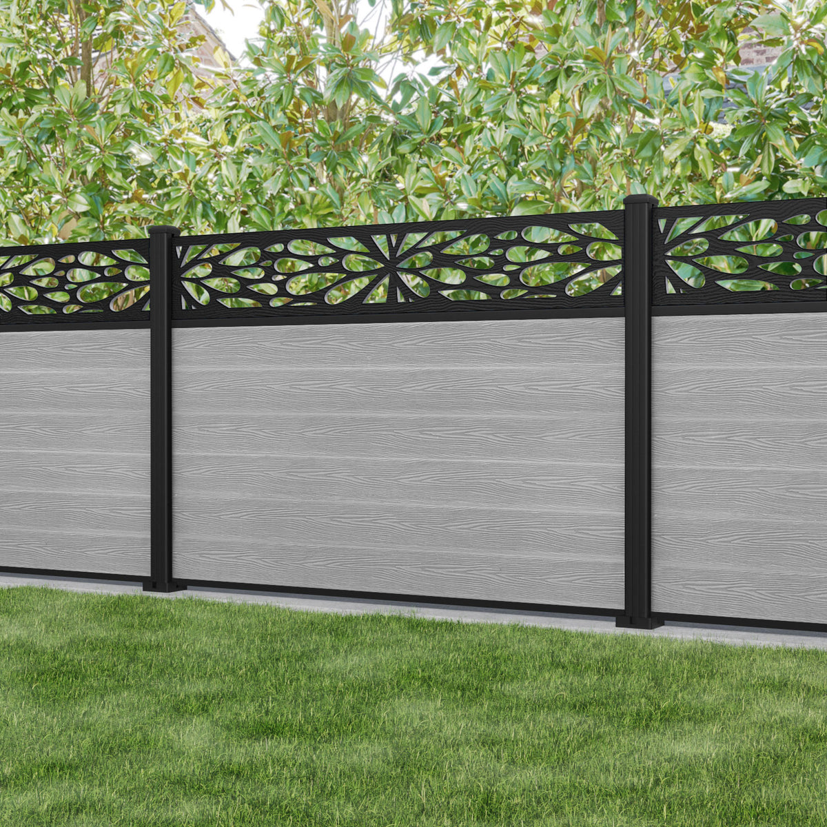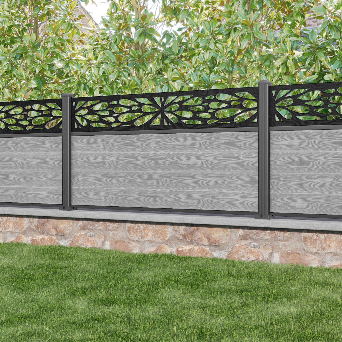 Classic Blossom Fence Panel Light Grey - with our aluminium posts