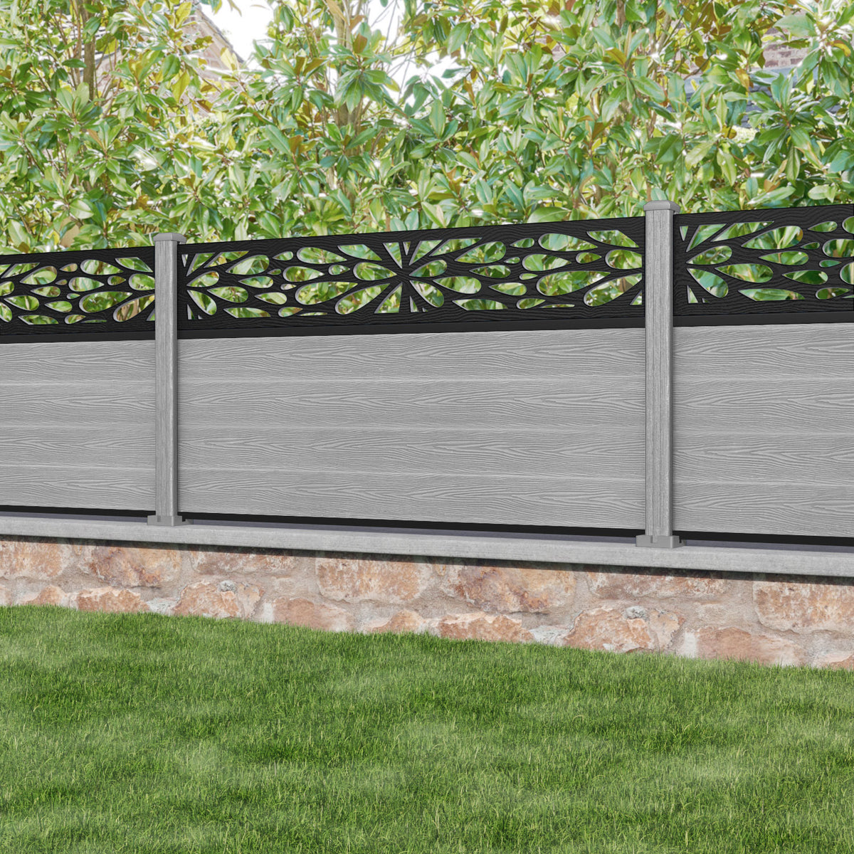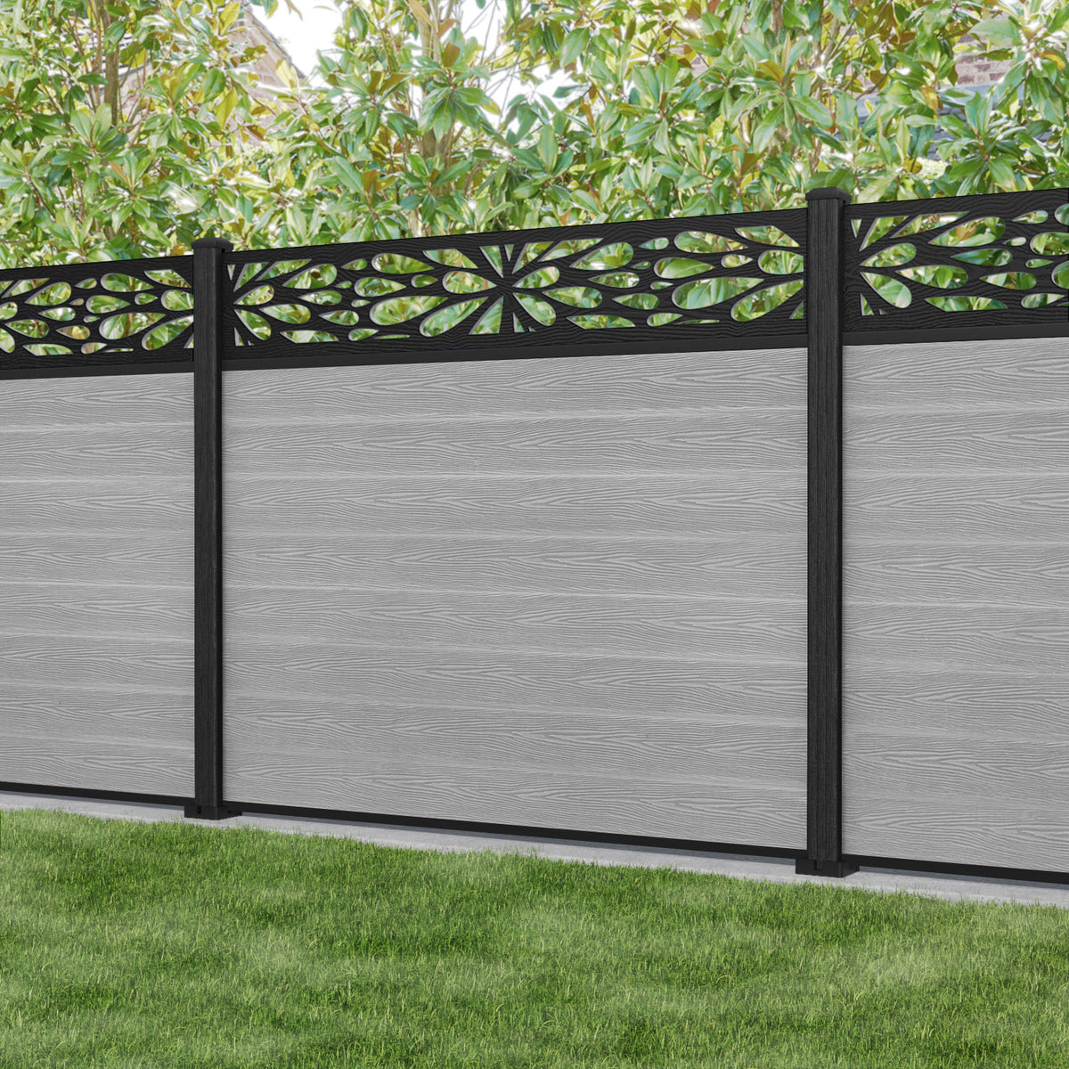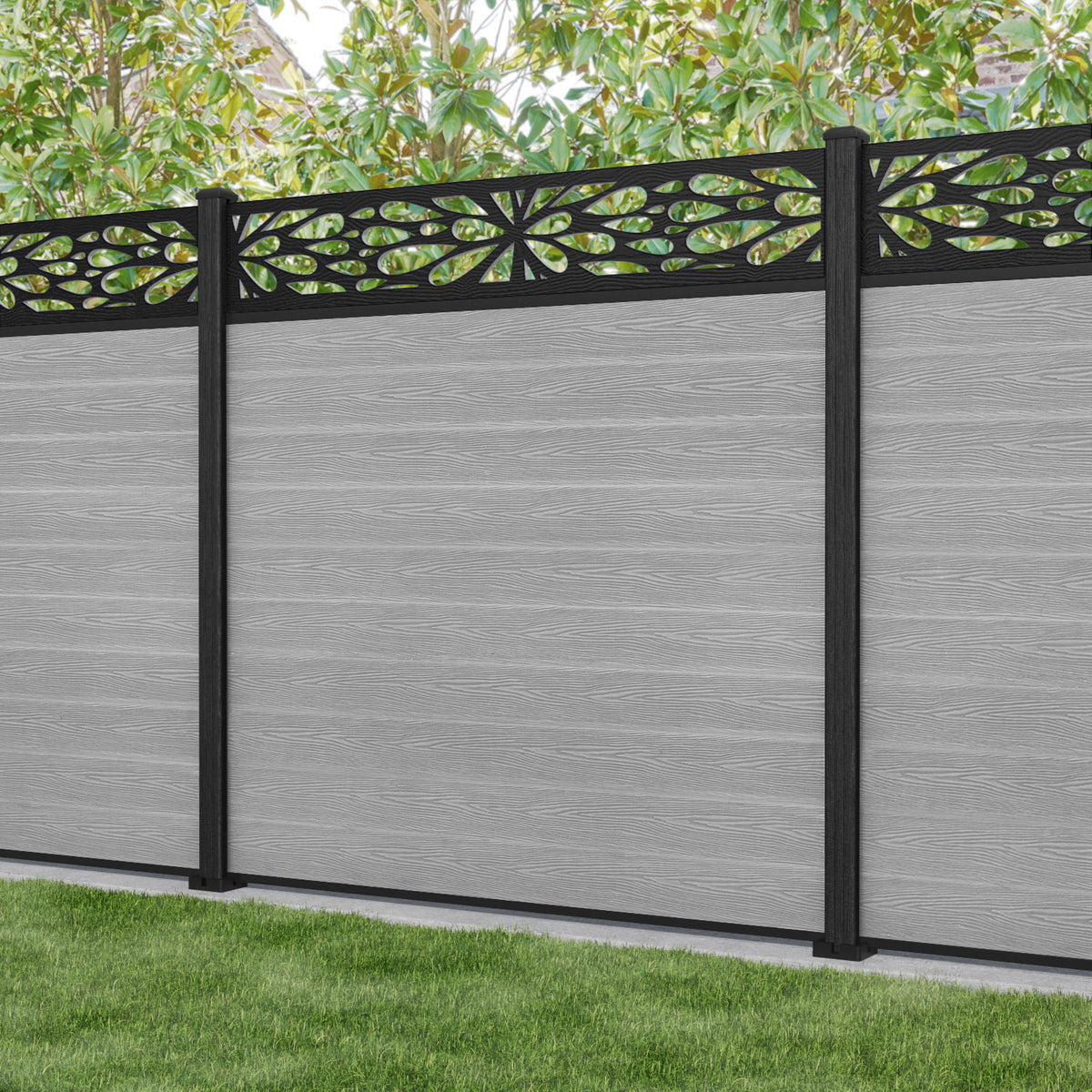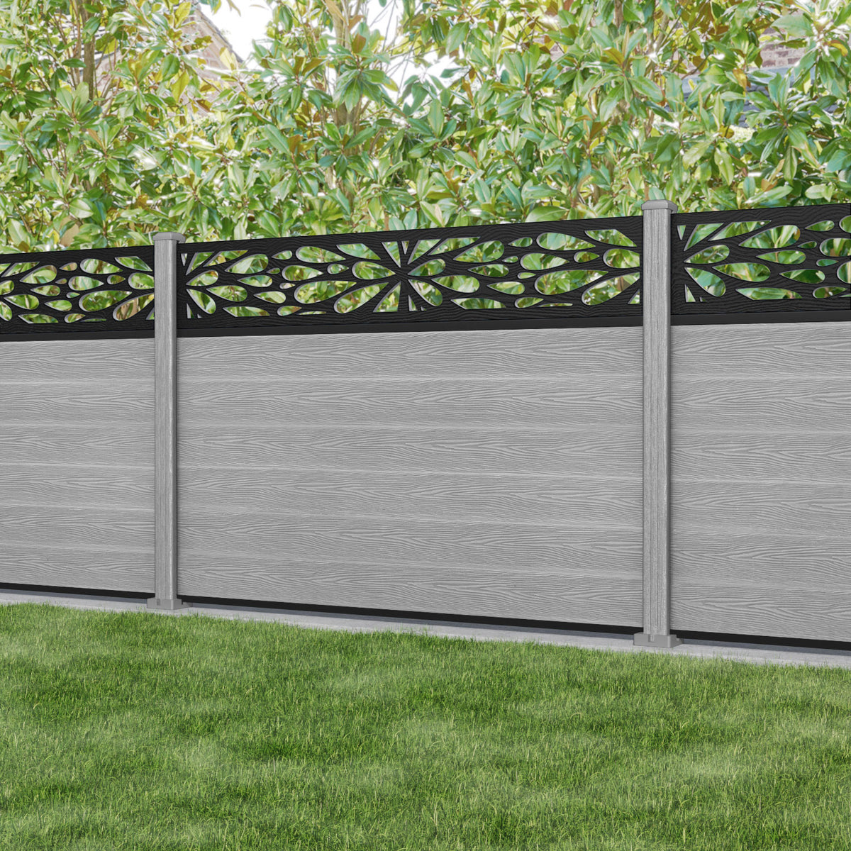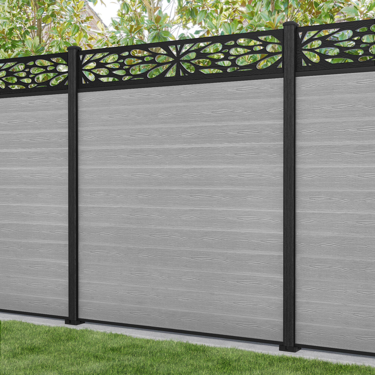 Classic Blossom Fence Panel - Light Grey - with our composite posts