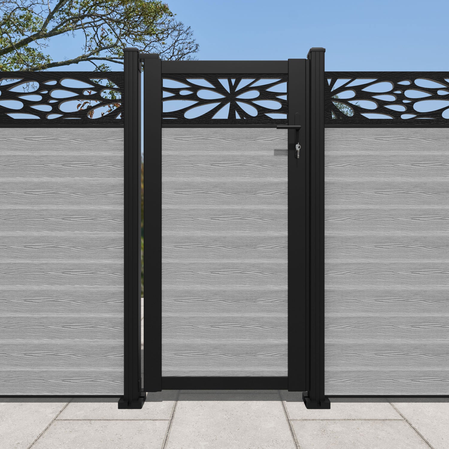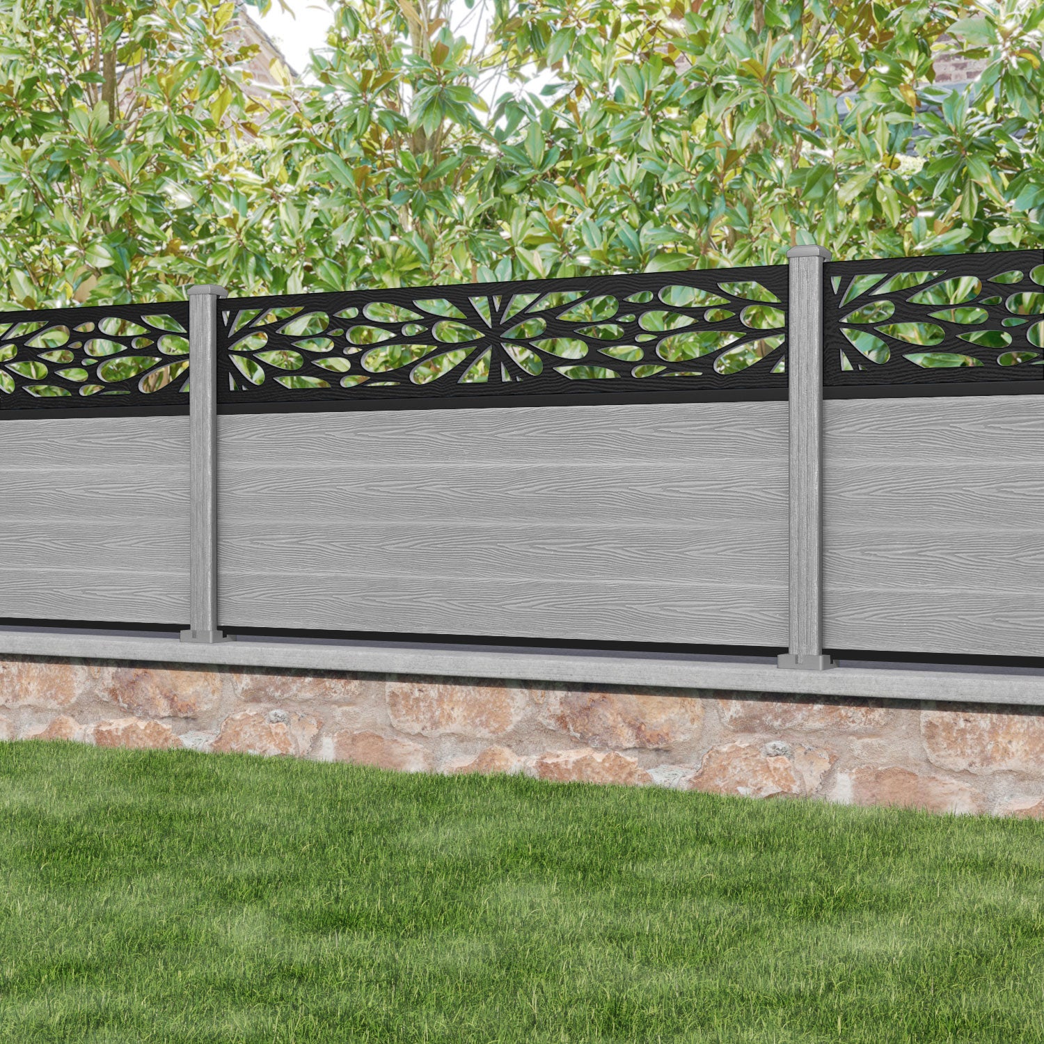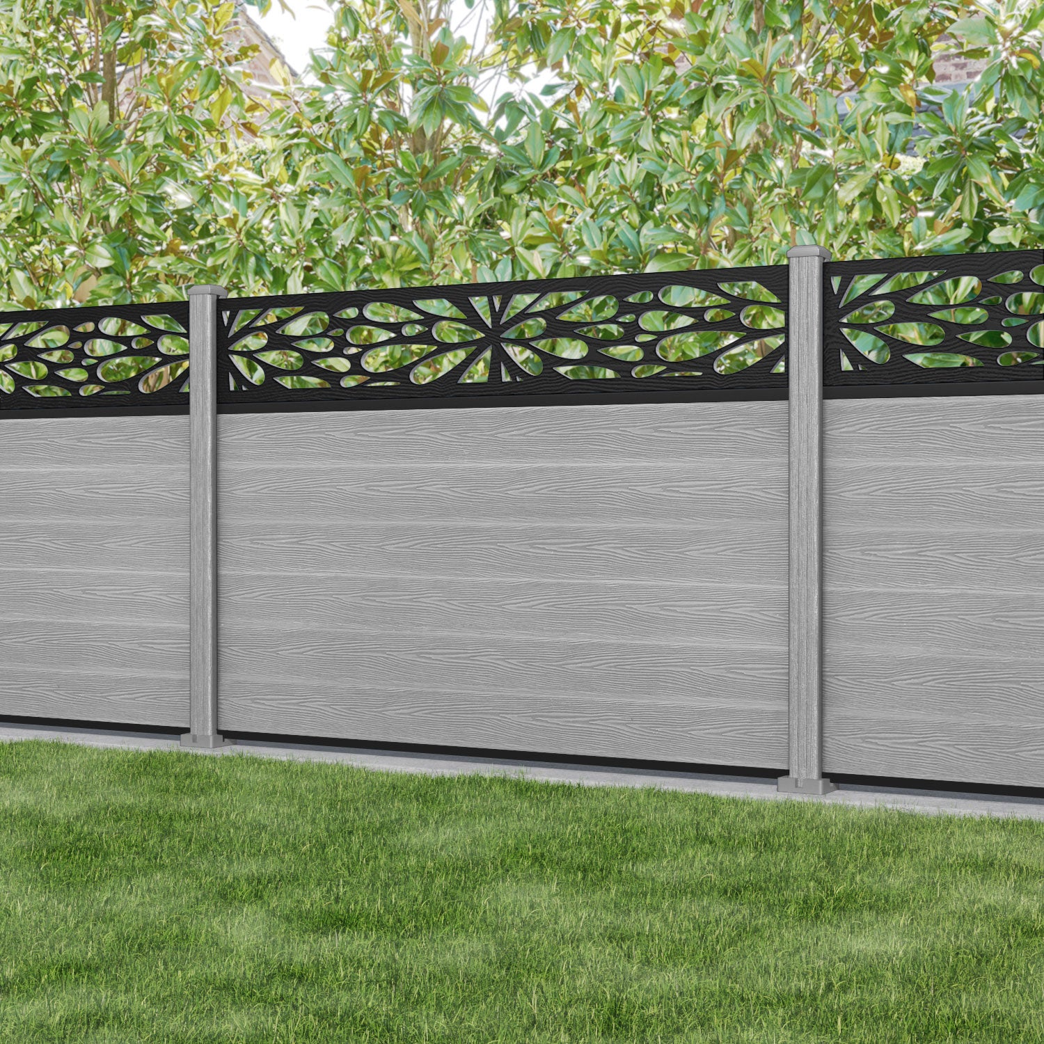 Classic Blossom Fence Panel Light Grey - with our composite posts