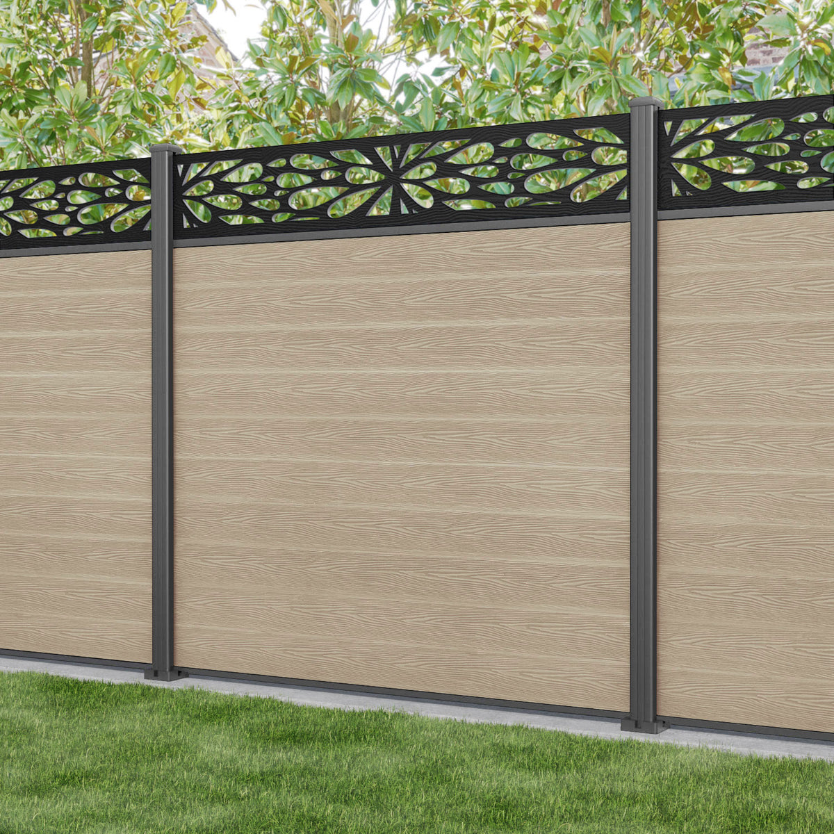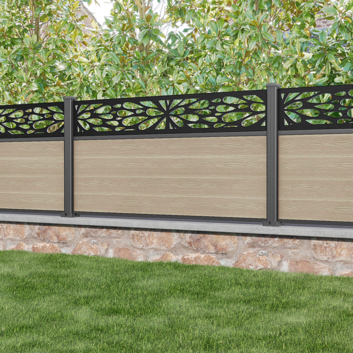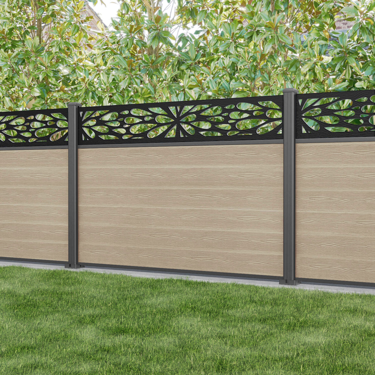 Classic Blossom Fence Panel Light Oak - with our aluminium posts