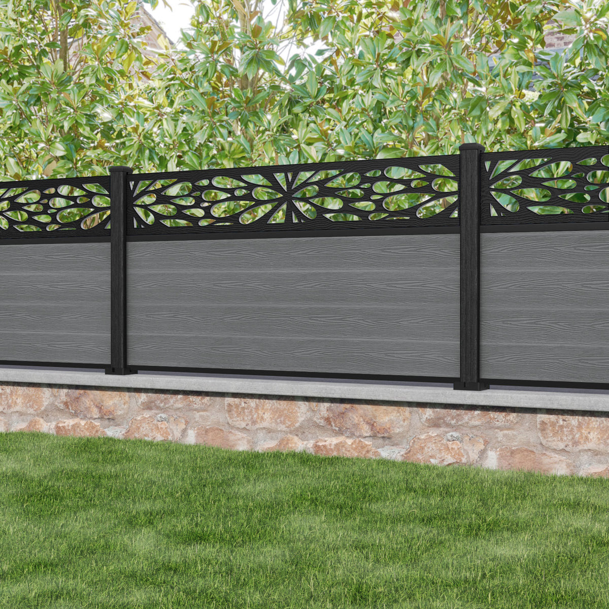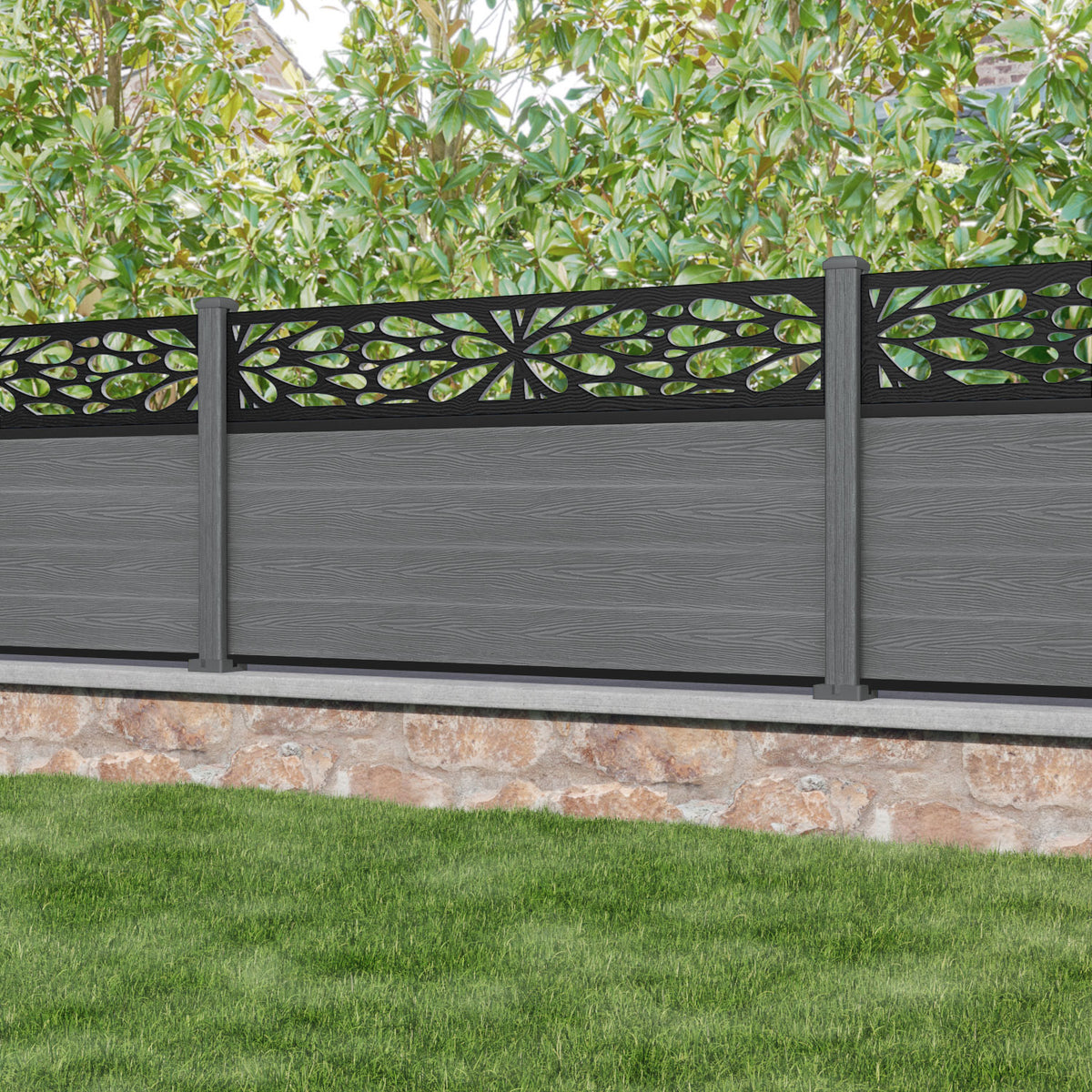 Classic Blossom Fence Panel Mid Grey - with our composite posts