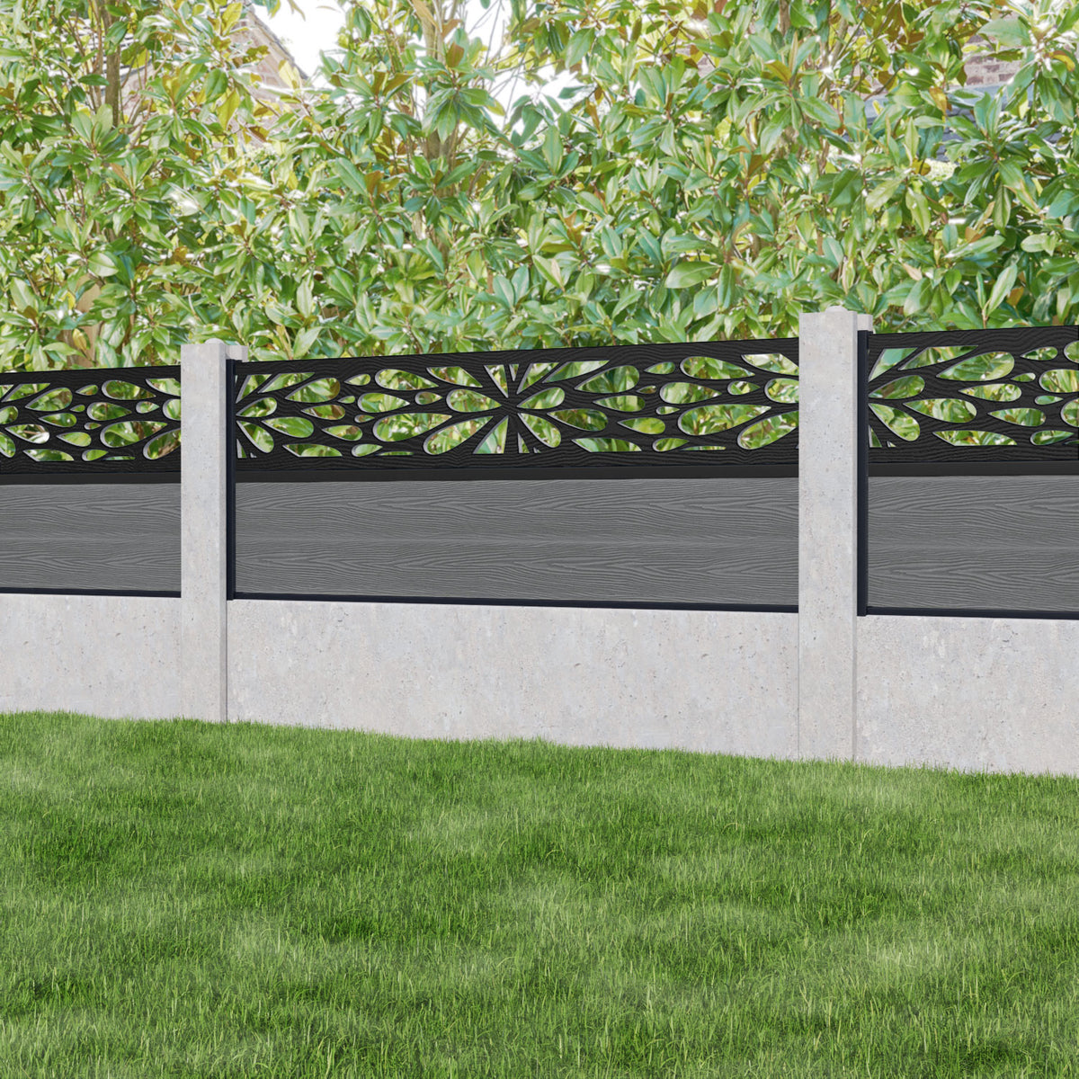 Classic Blossom Fence Panel Mid Grey - for existing concrete posts