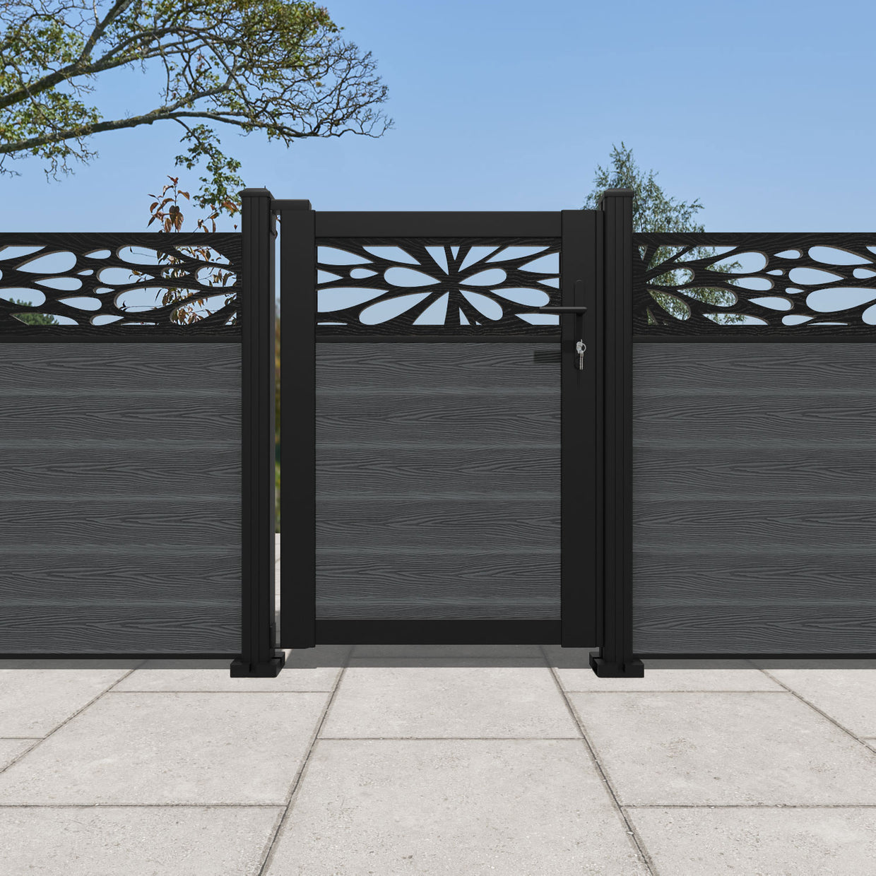 Pair your gate with our eco-friendly composite or aluminium slats for a seamless match to our fencing collections, ensuring a stylish and cohesive look.