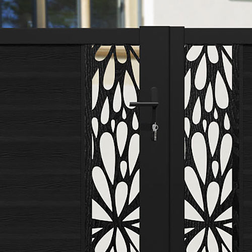 Classic Blossom Straight Top Driveway Gate Black - Middle Screen