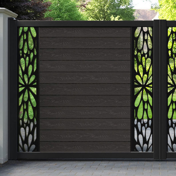 Classic Blossom Straight Top Driveway Gate Dark Oak - Middle & End Screen