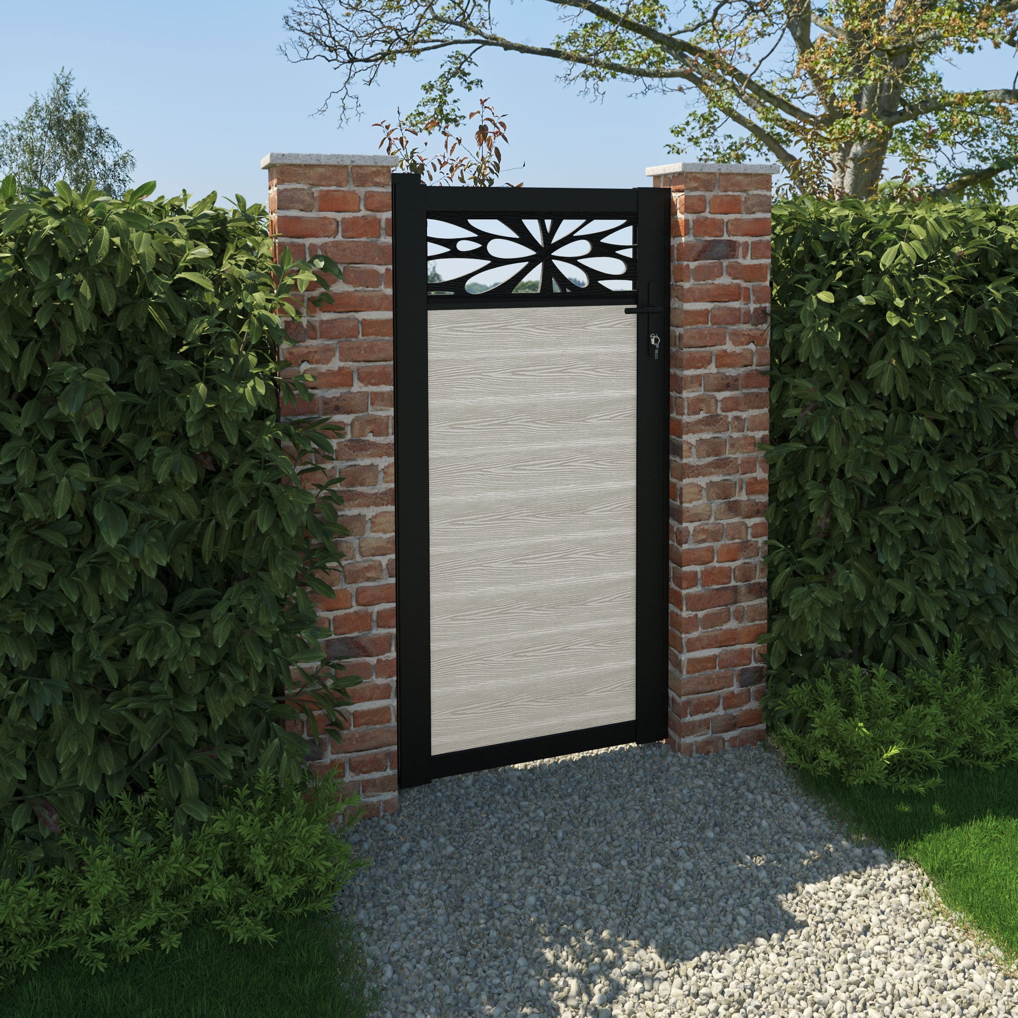 Classic Blossom Straight Top Driveway Gate Light Stone - Middle & End Screen