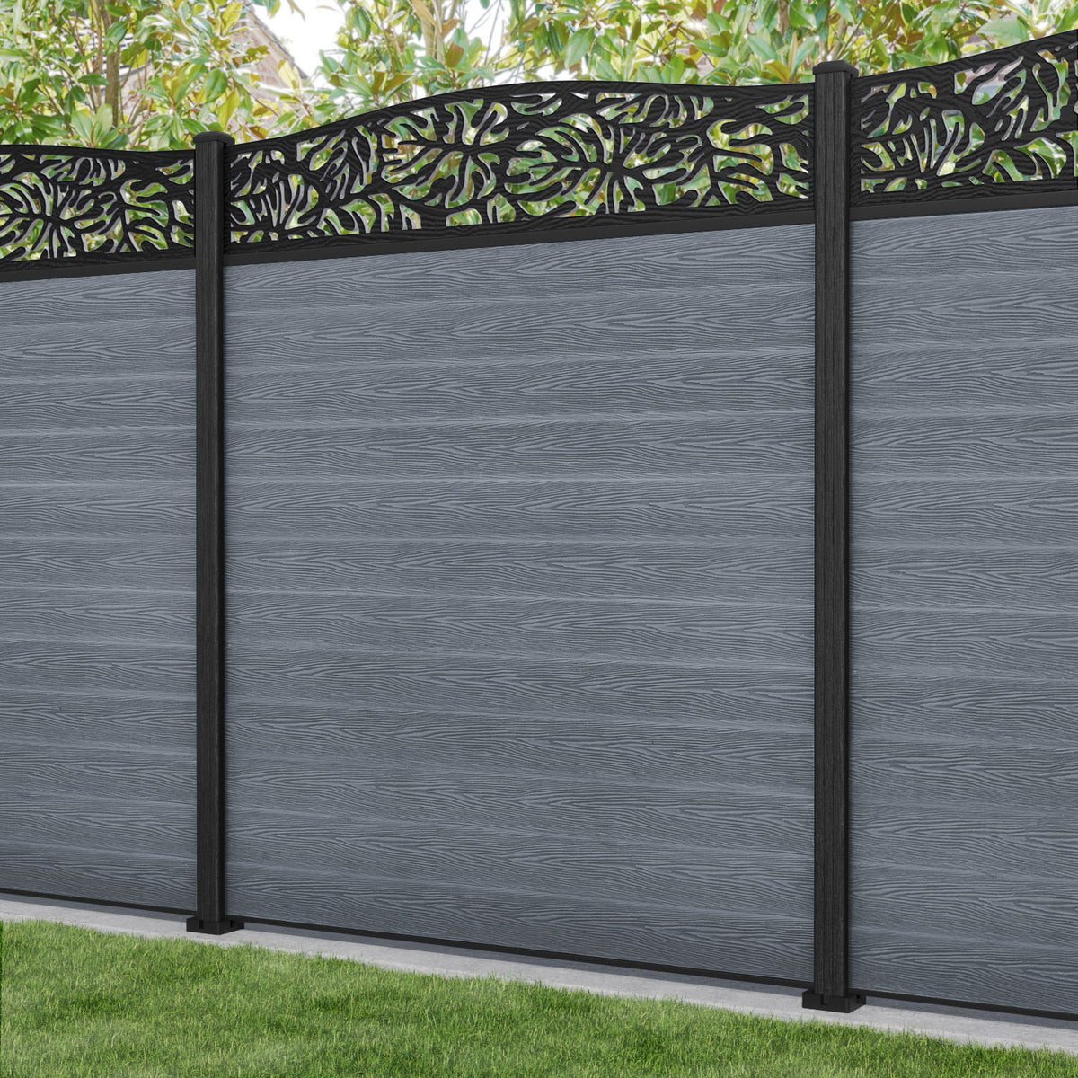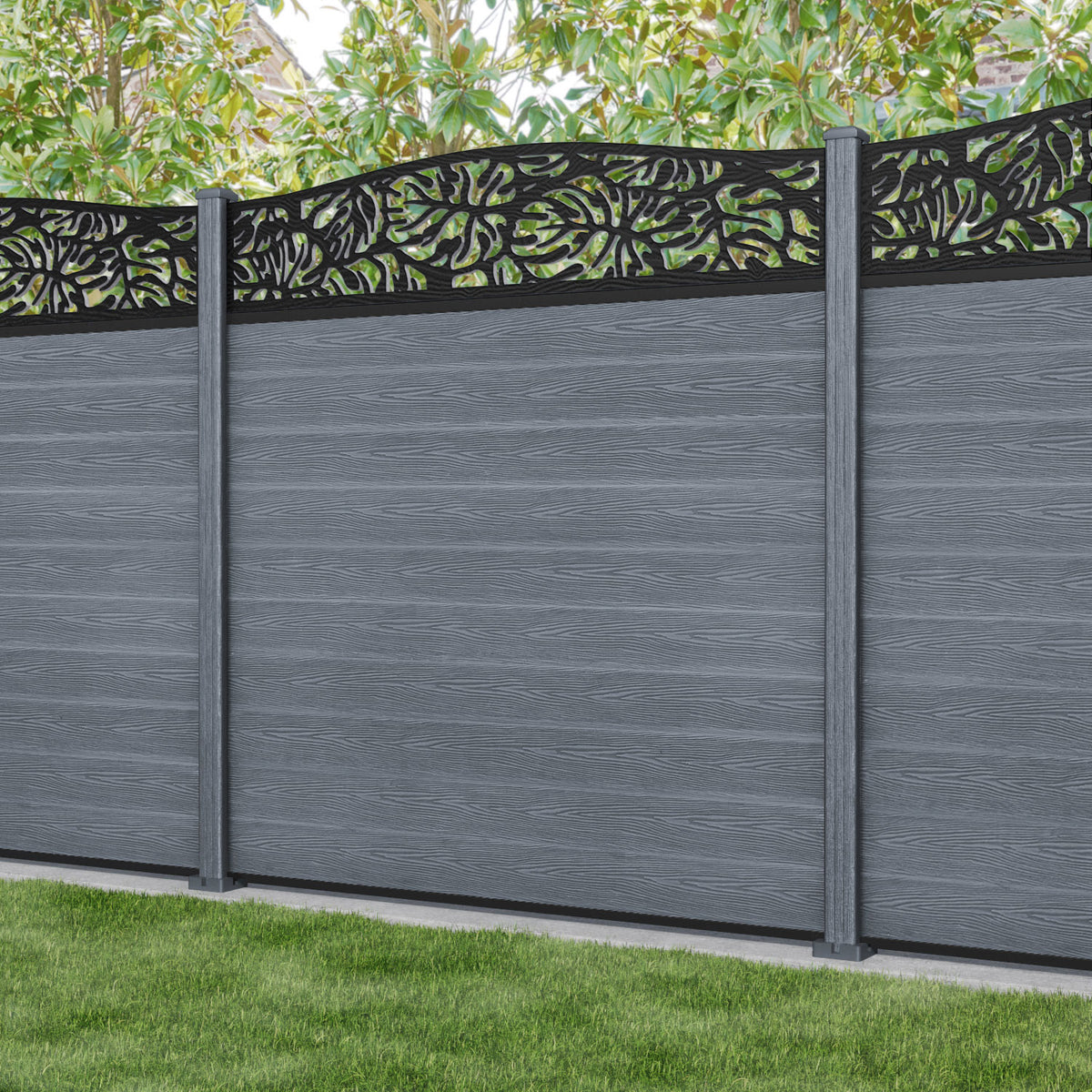 Classic Botanic Curved Top Fence Panel Anthracite - with our composite posts