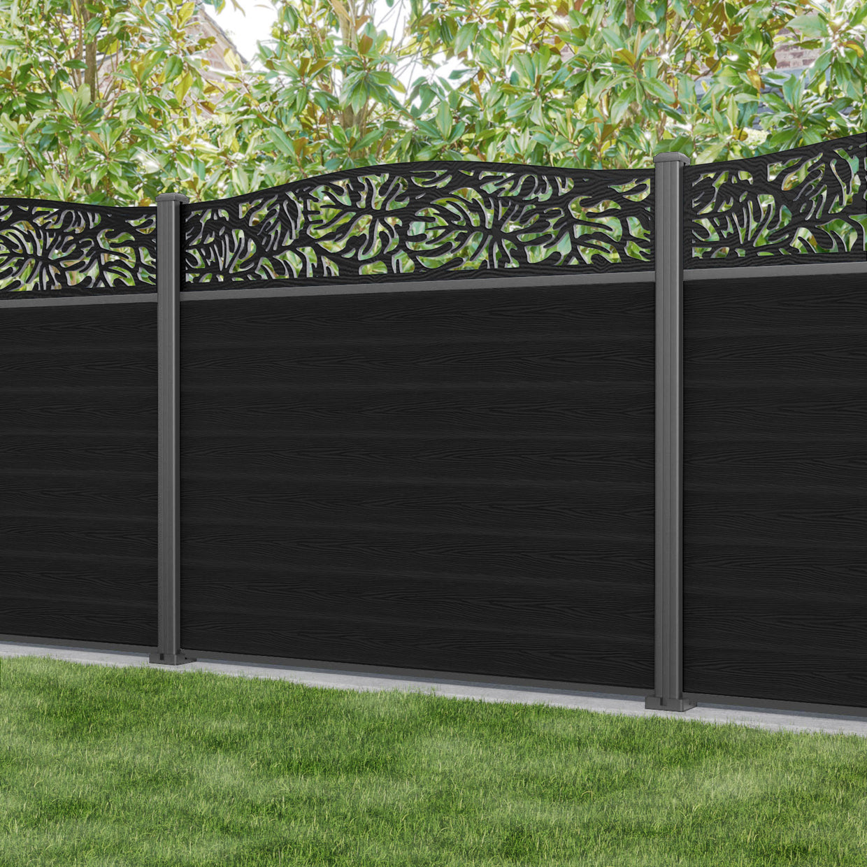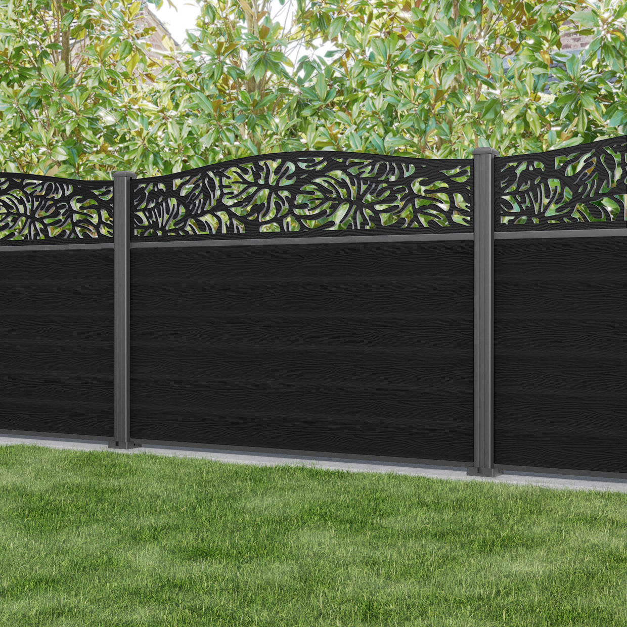 Classic Botanic Curved Top Fence Panel Black - with our aluminium posts