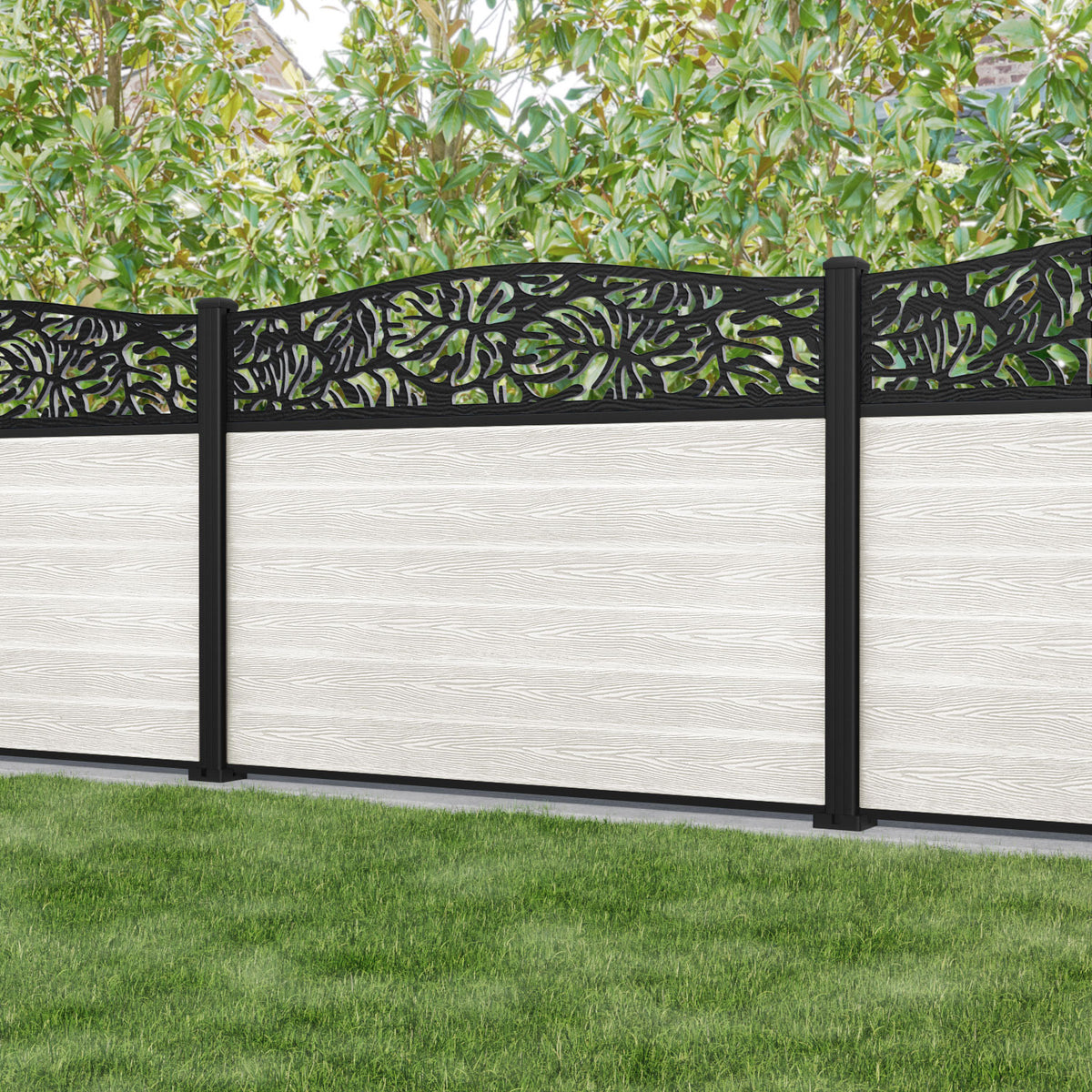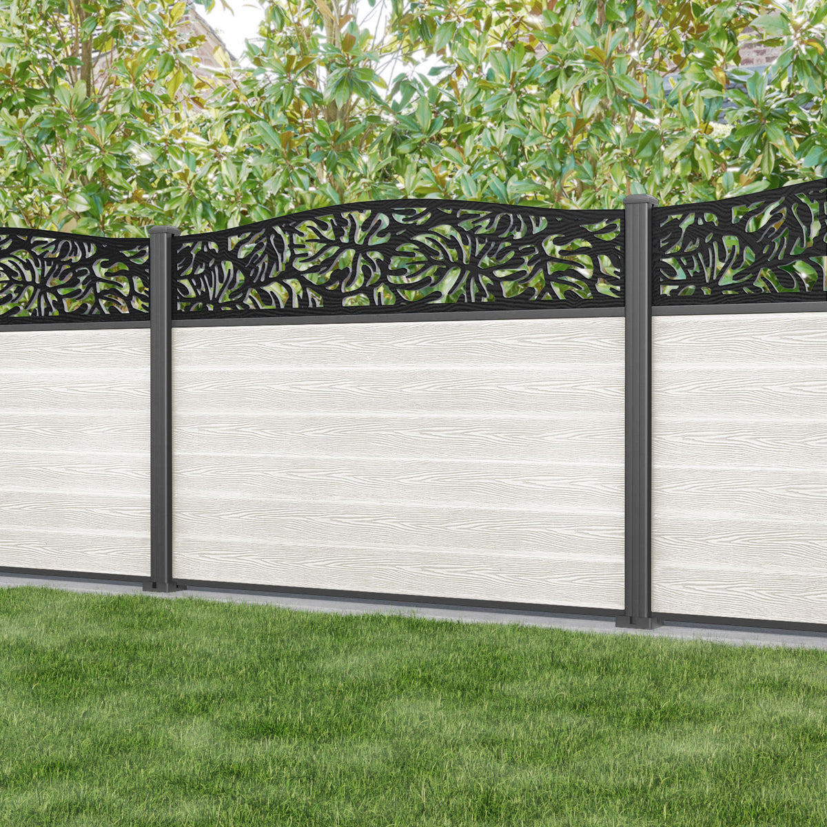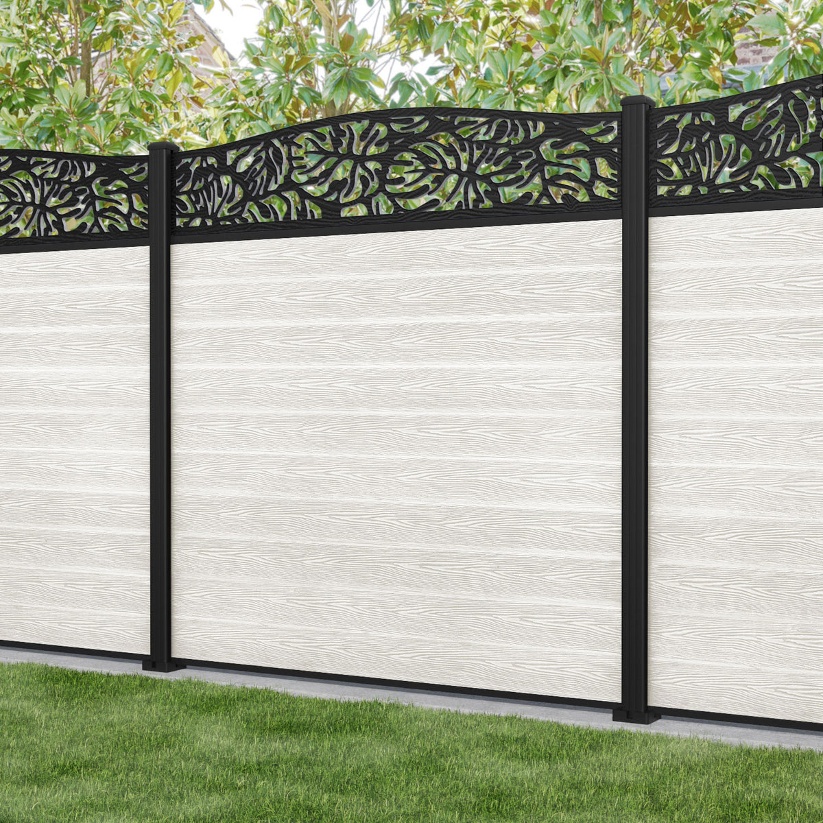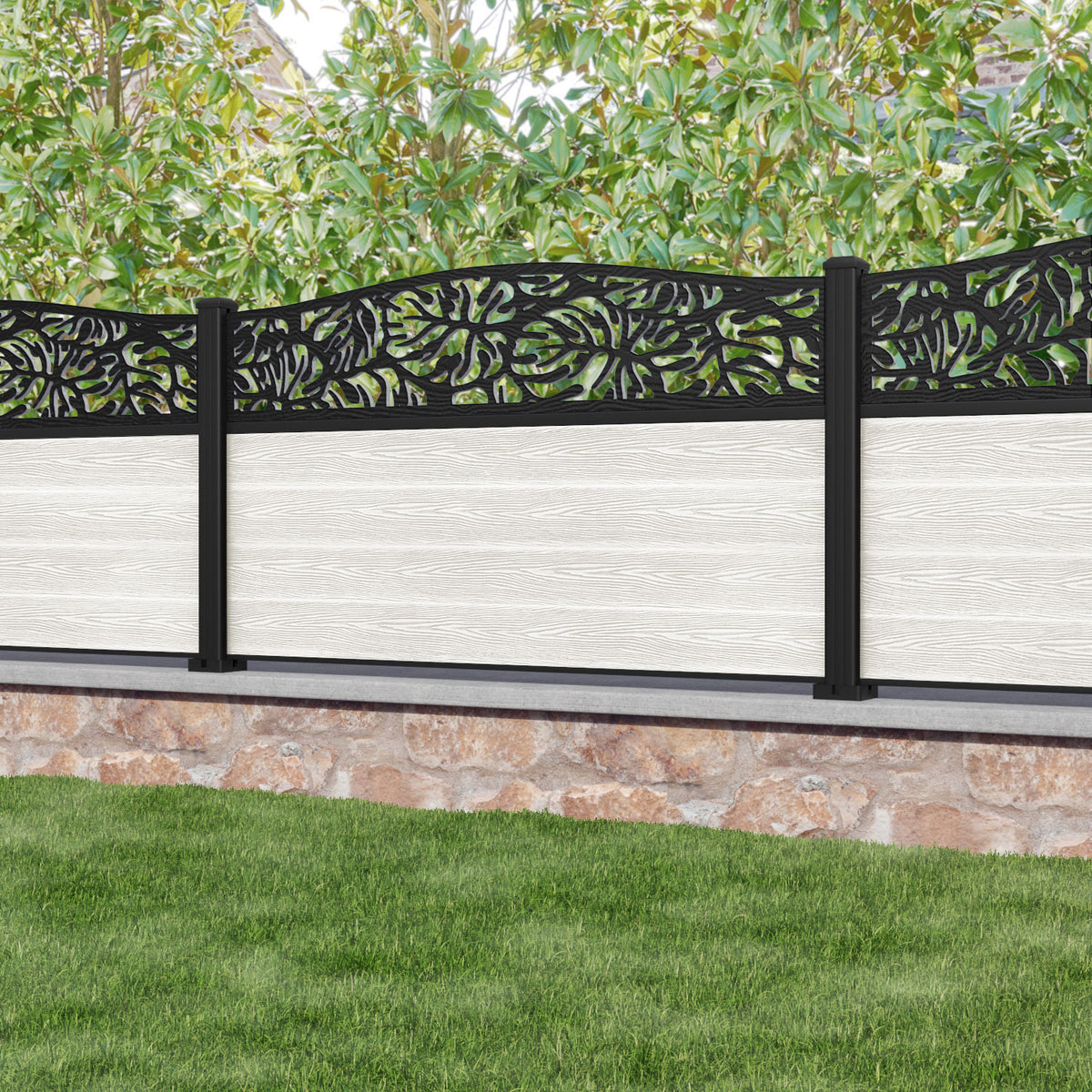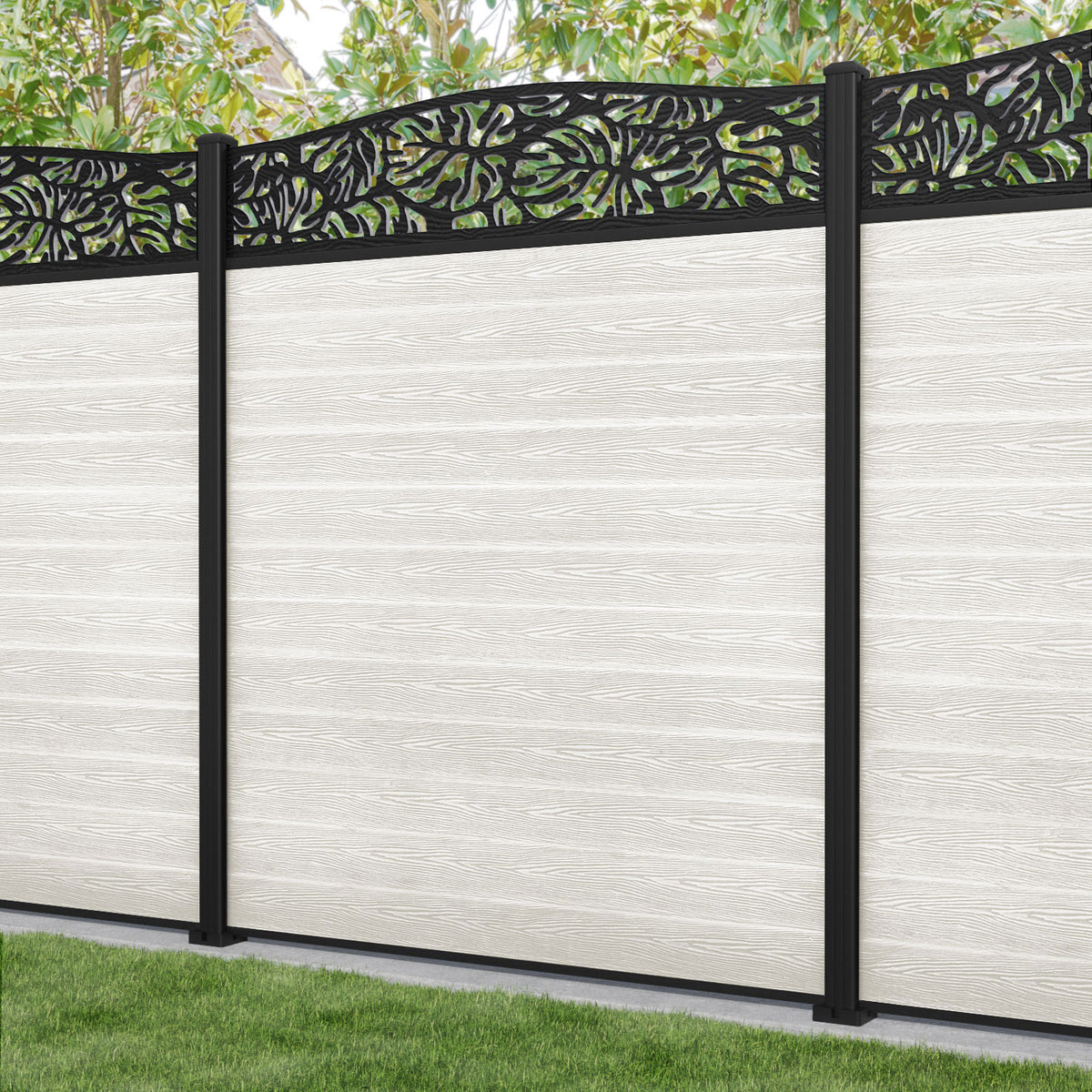 Classic Botanic Curved Top Fence Panel Light Stone - with our aluminium posts