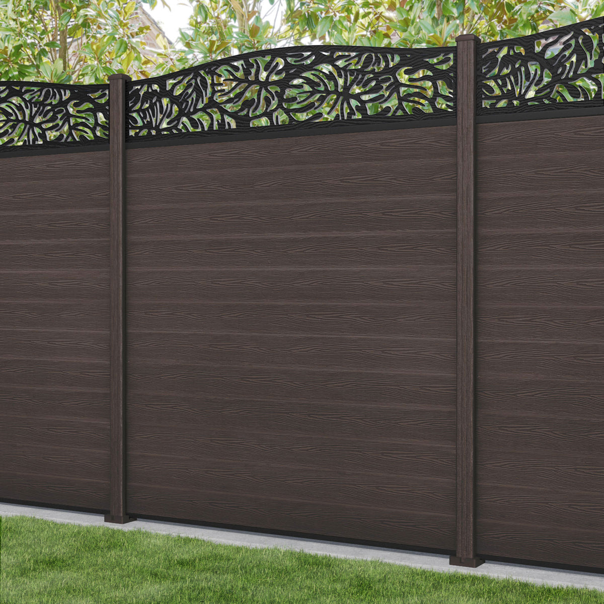 Classic Botanic Curved Top Fence Panel - Mid Brown - with our composite posts
