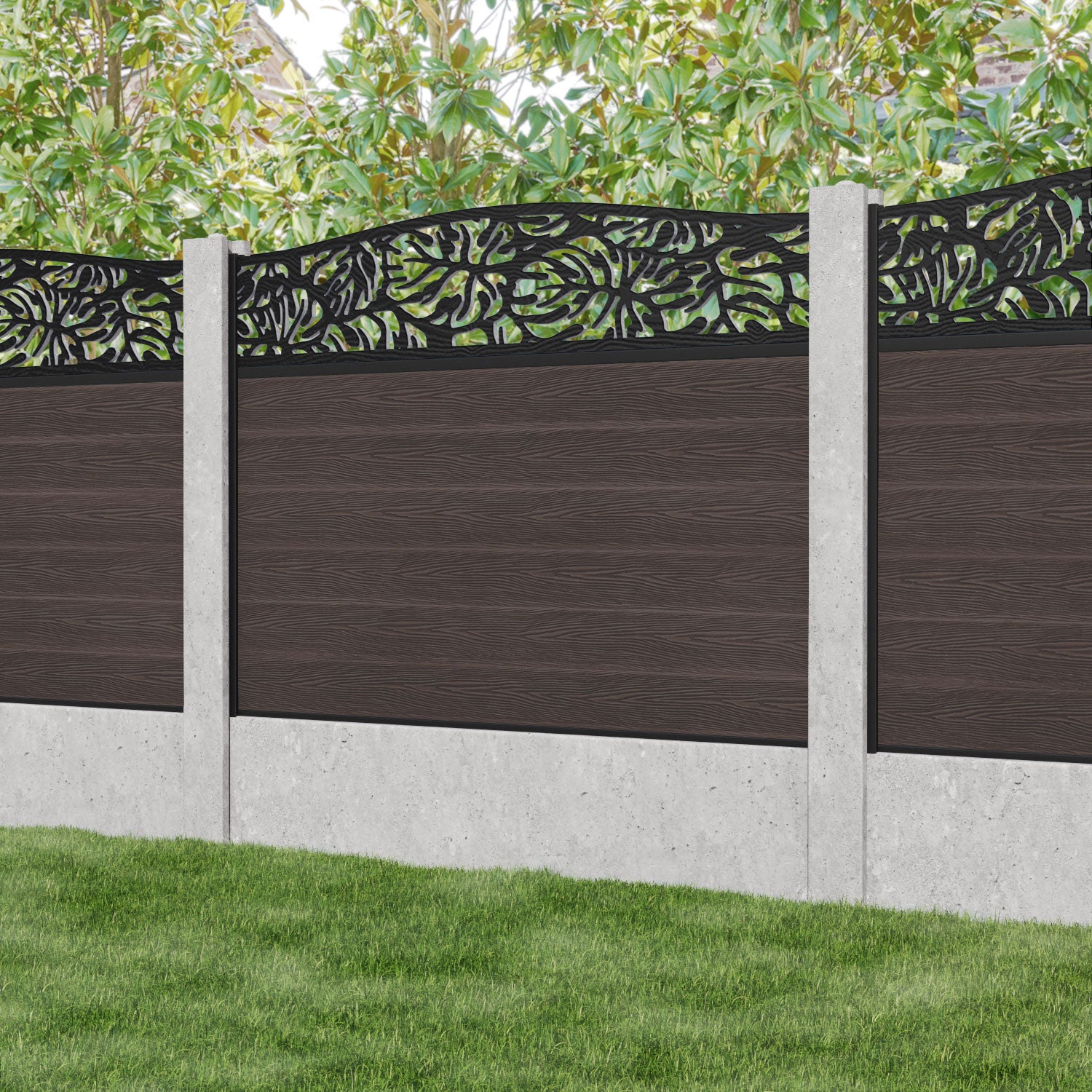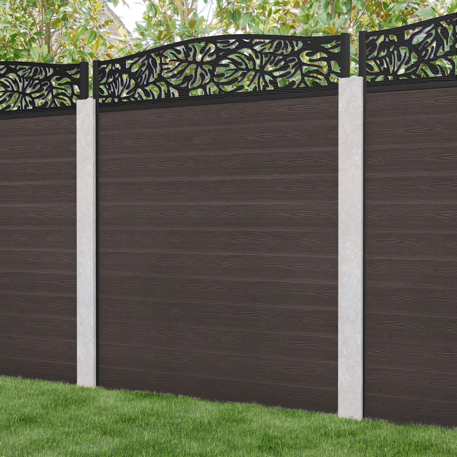 Classic Botanic Curved Top Fence Panel Mid Brown - for existing concrete posts