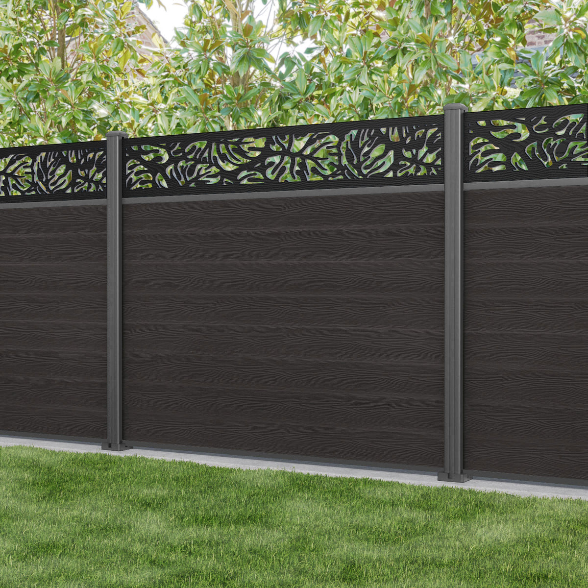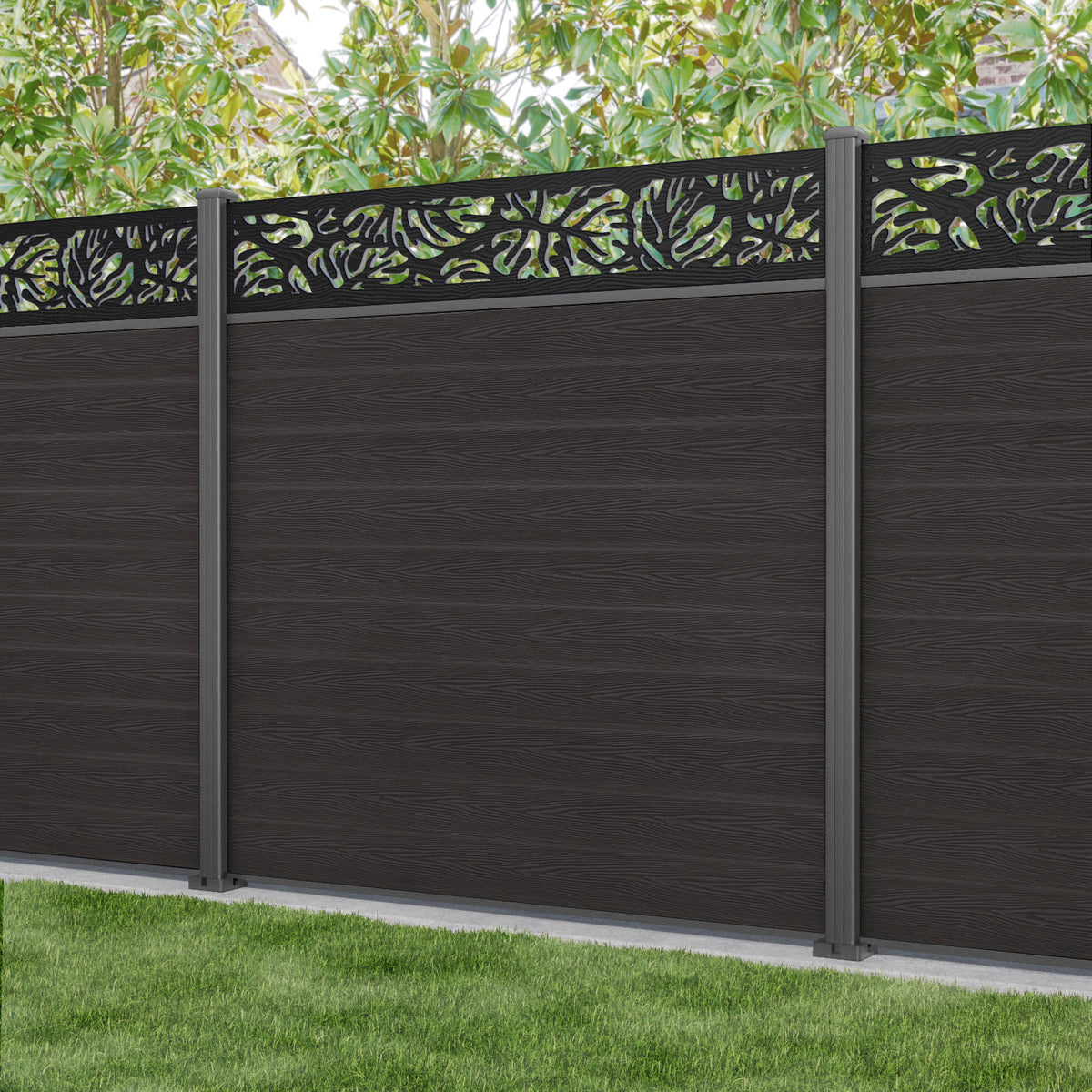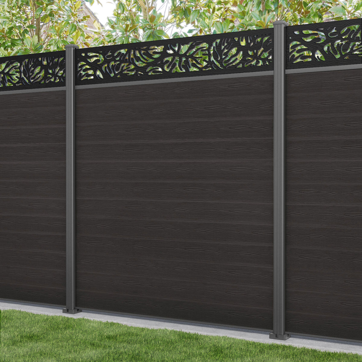 Classic Botanic Fence Panel Dark Oak - with our aluminium posts