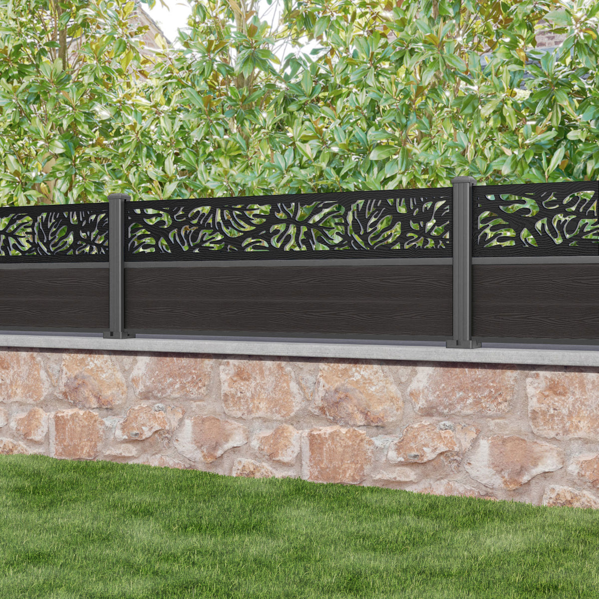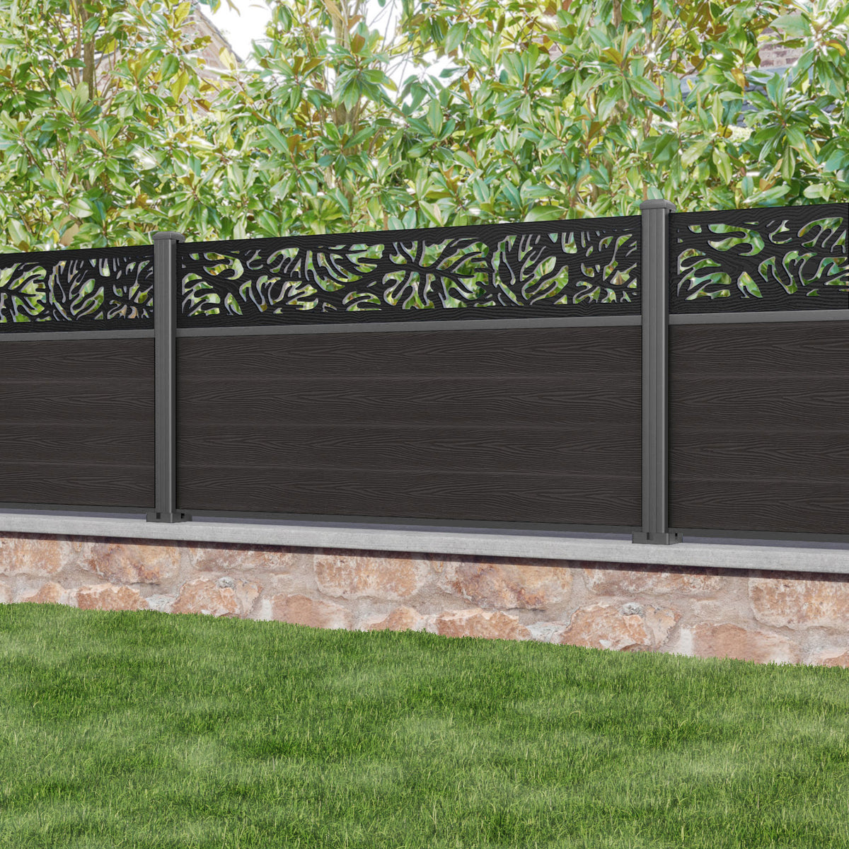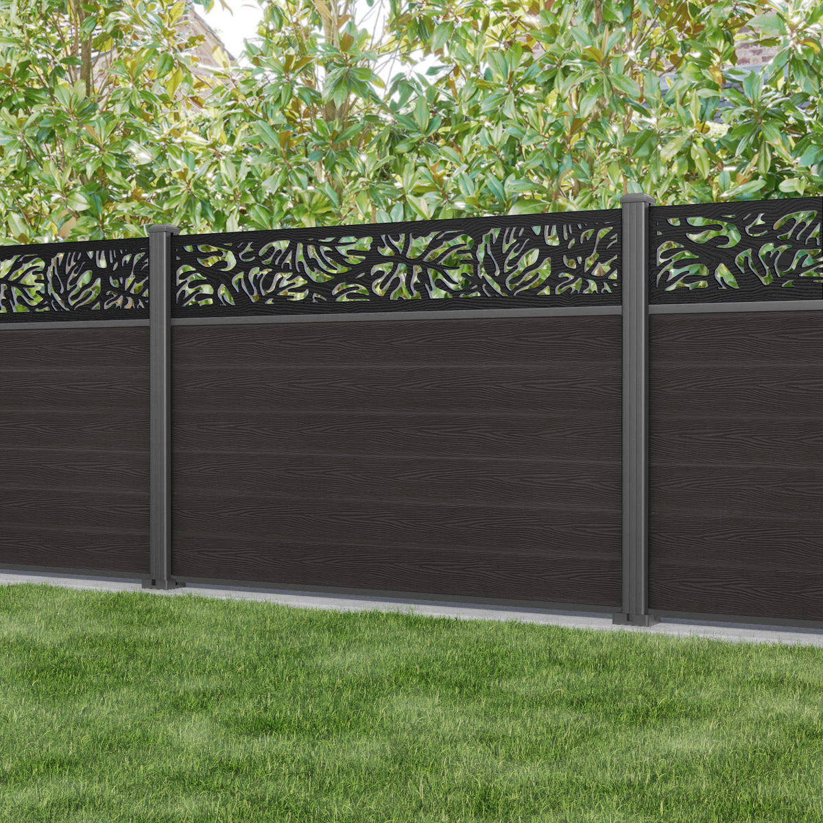 Classic Botanic Fence Panel Dark Oak - with our aluminium posts