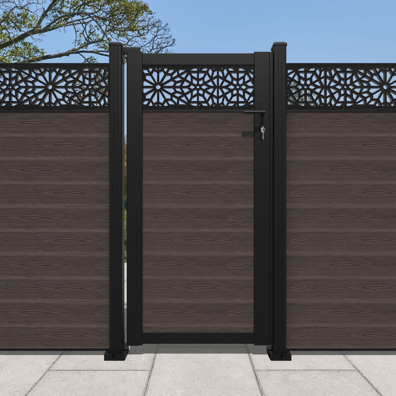 Pair your gate with our eco-friendly composite or aluminium slats for a seamless match with our fencing collections, ensuring a stylish and cohesive look.