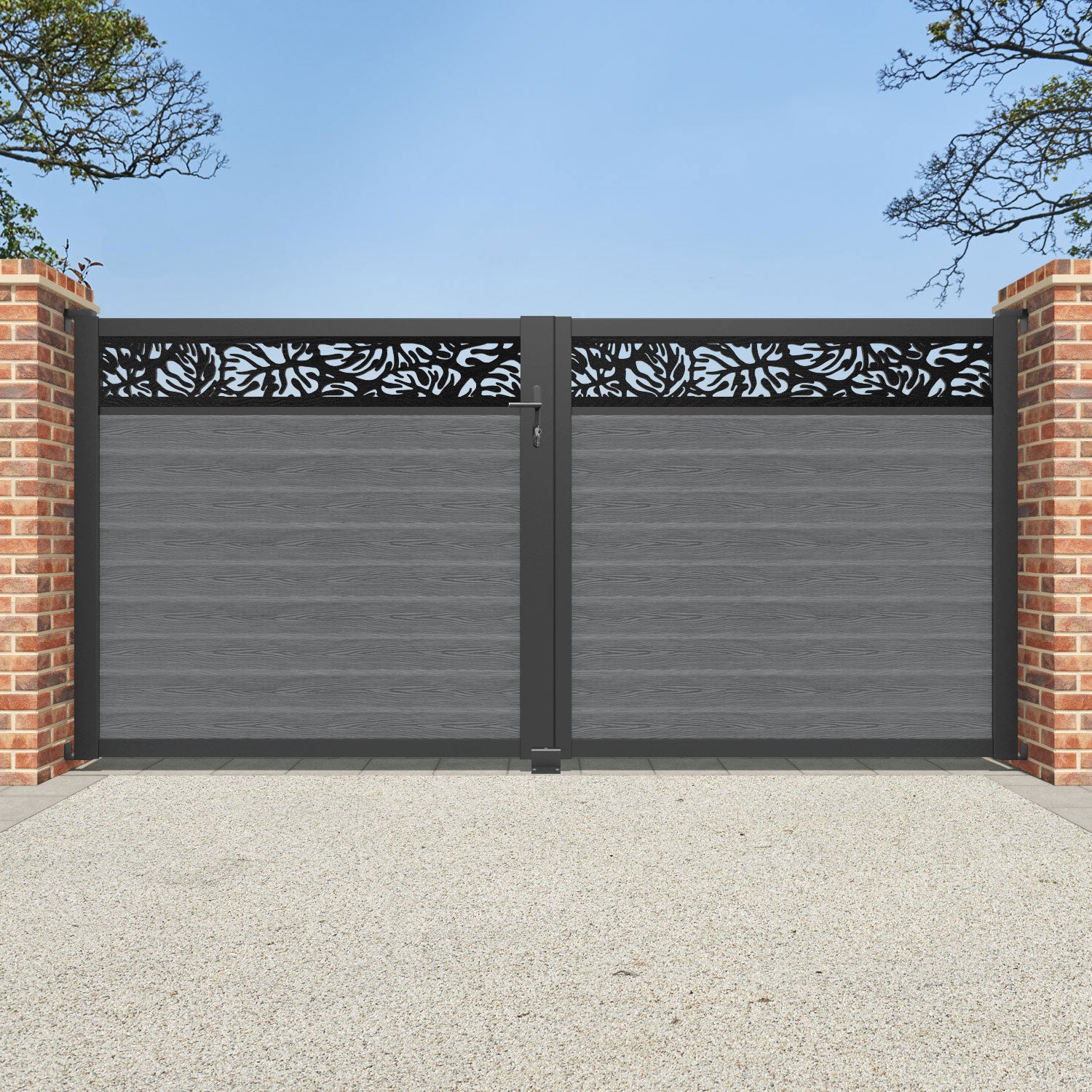 Classic Botanic Straight Top Driveway Gate Mid Grey - Top Screen