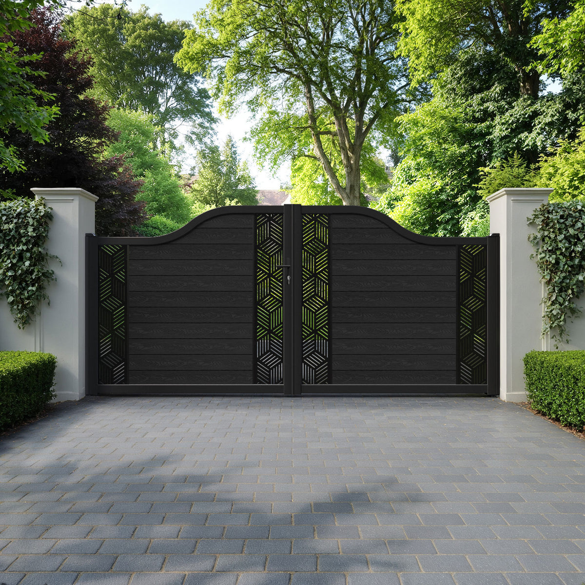 Classic Cubed Curved Top Driveway Gate Black - Middle & End Screen