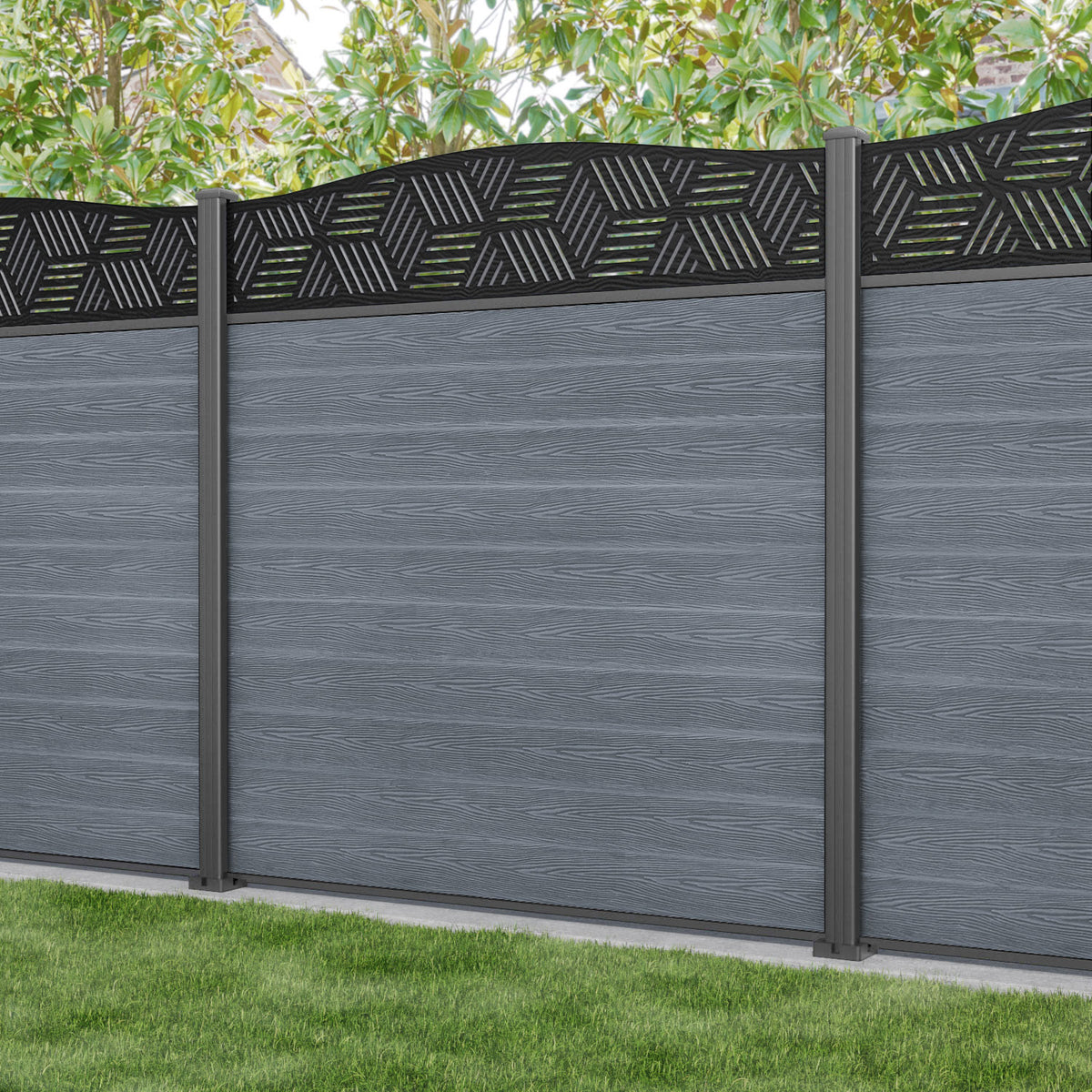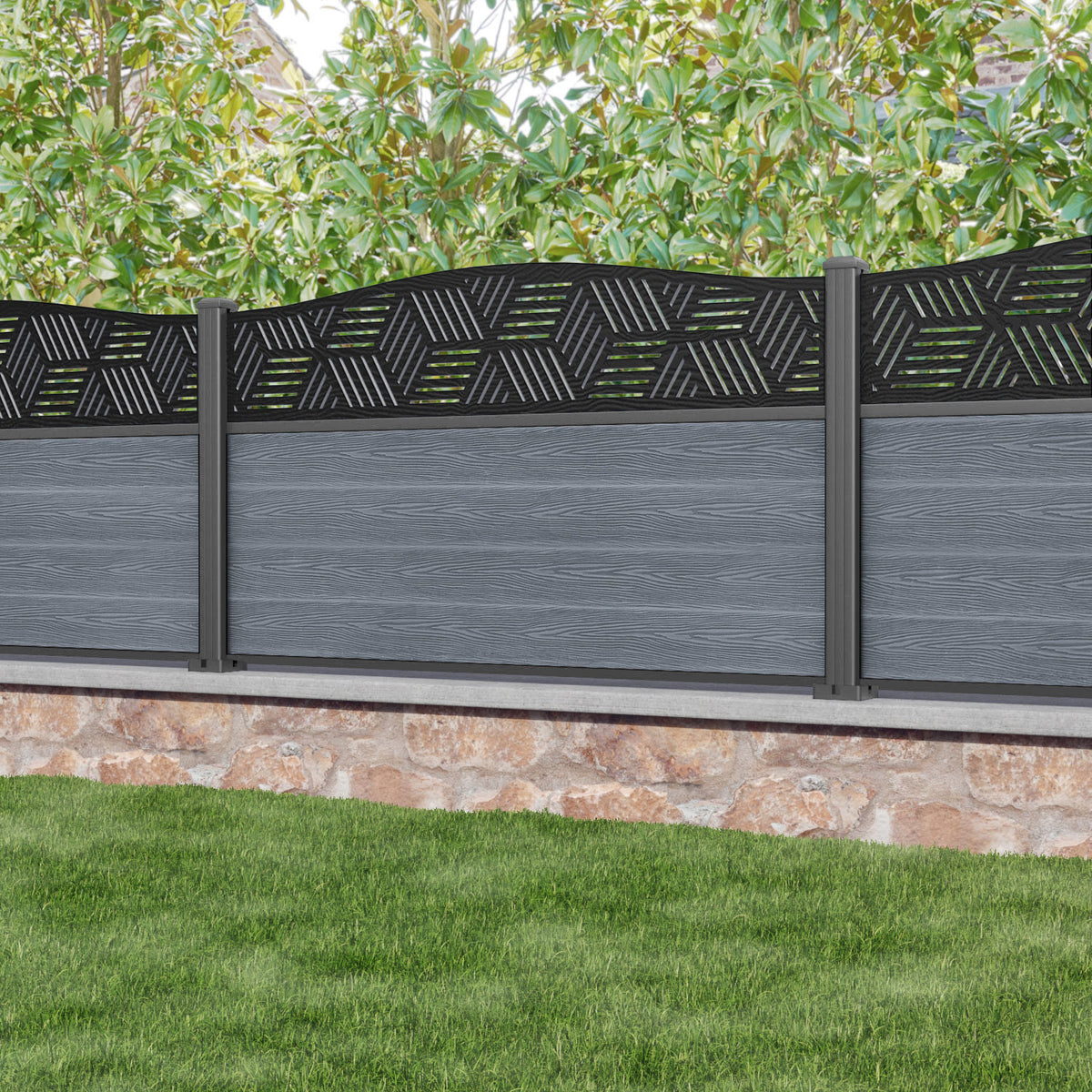 Classic Cubed Curved Top Fence Panel Anthracite - with our aluminium posts
