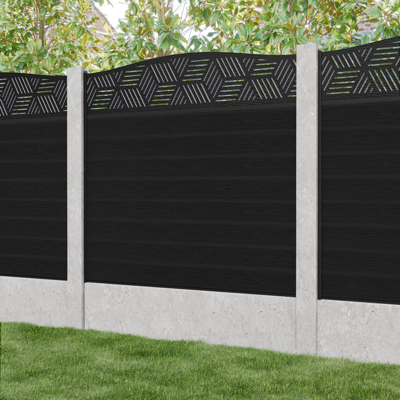 Classic Cubed Curved Top Fence Panel Black - for existing concrete posts